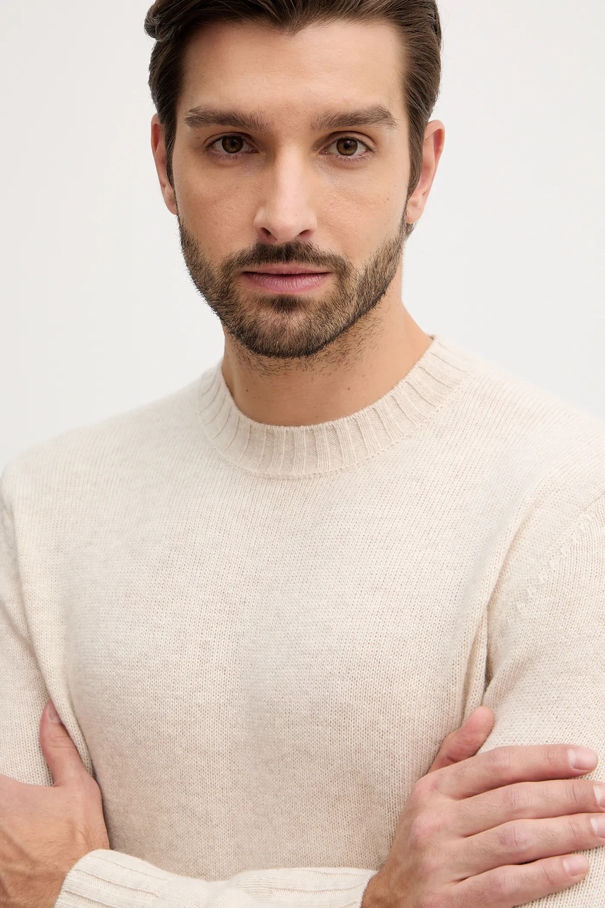 Sisley sweter z dodatkiem wełny męski kolor beżowy lekki 18AYS104L