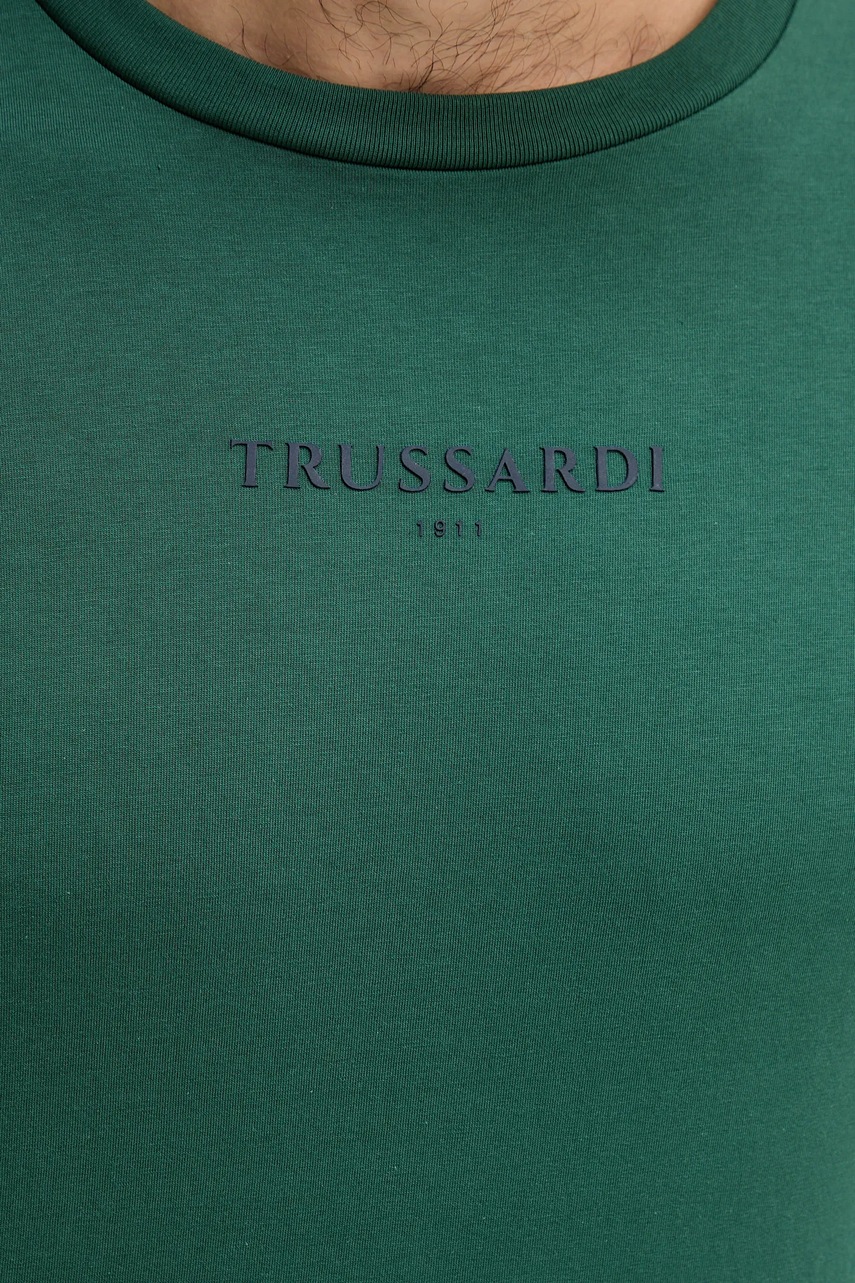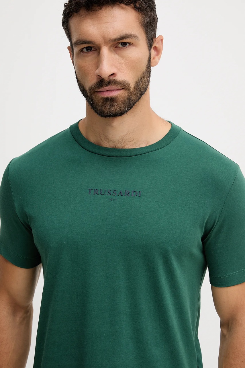 Trussardi t-shirt bawełniany męski kolor zielony z aplikacją G0308000054N