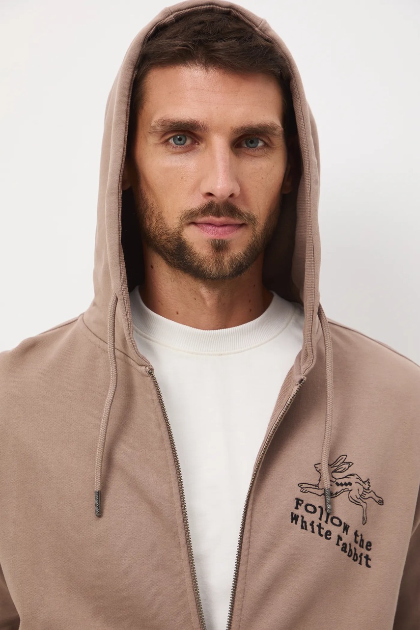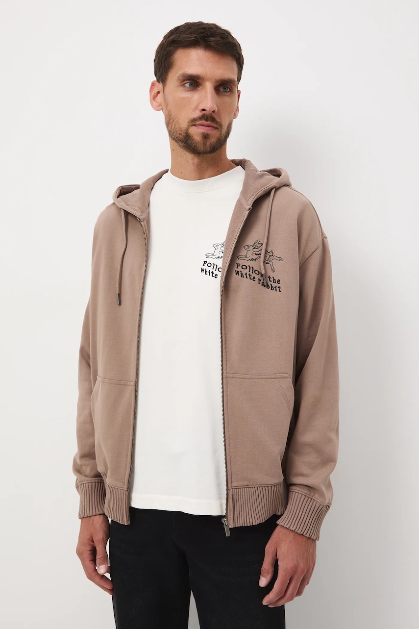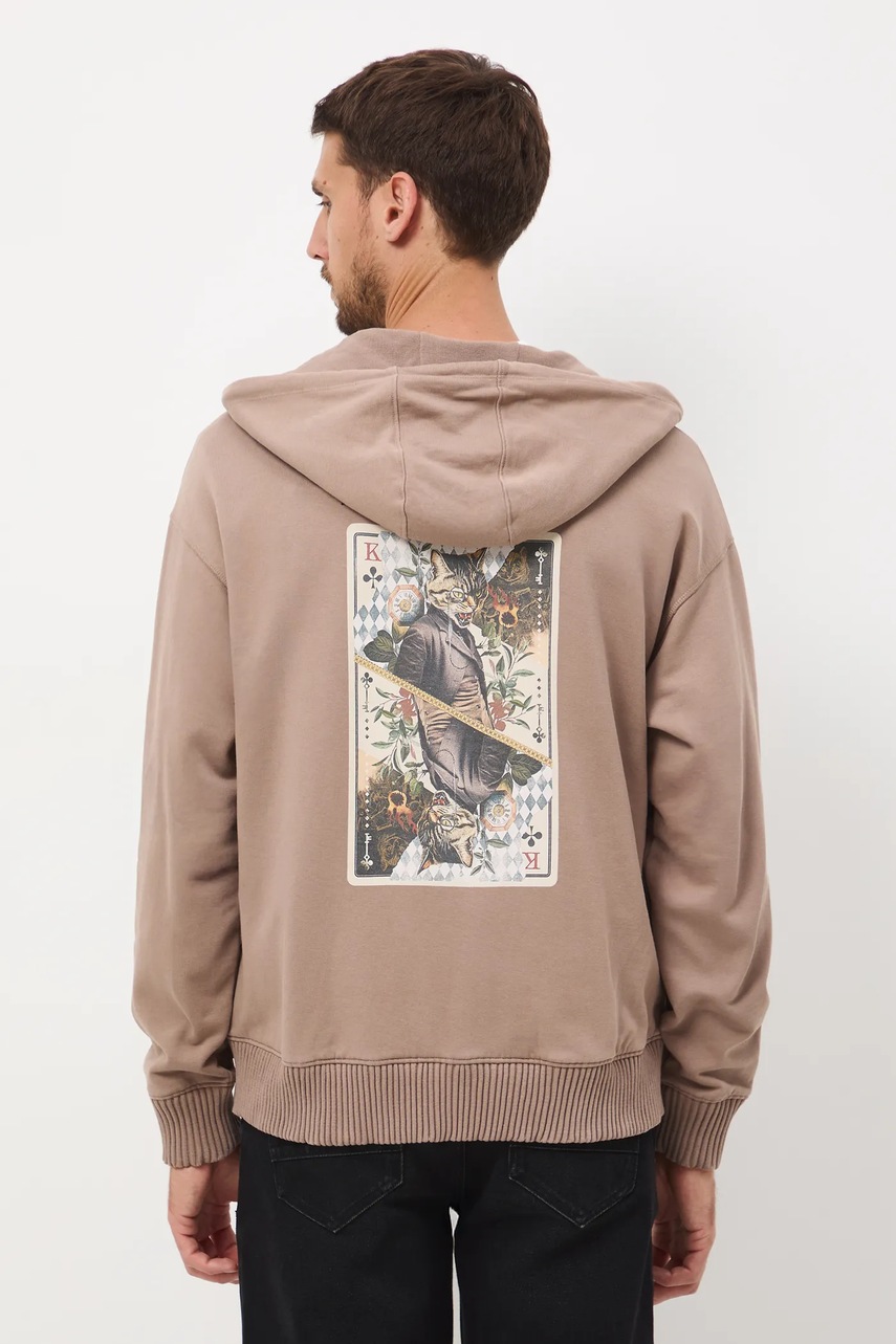 Medicine bluza bawełniana męska kolor brązowy z kapturem wzorzysta
