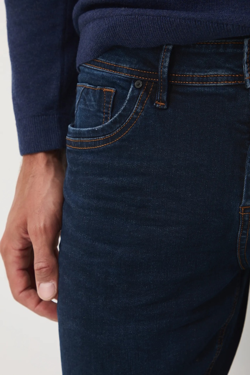 - Fason slim - jeansy o dopasowanym kroju z wąską nogawką, zarówno w okolicach ud, jak i kostki. Podkreślają naturalną linię sylwetki, lecz jej nie opinają - są komfortowe w codziennym użytkowaniu.
