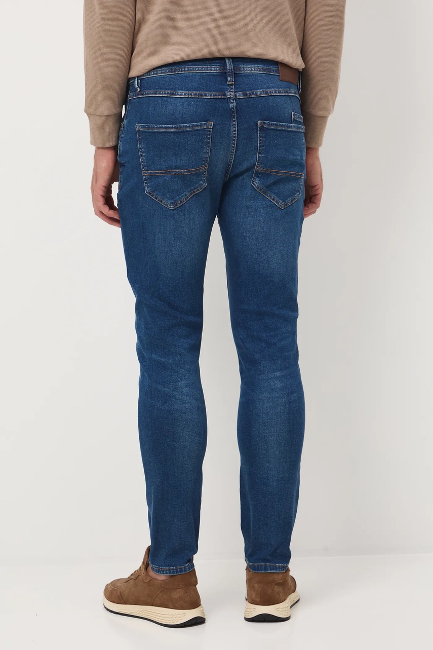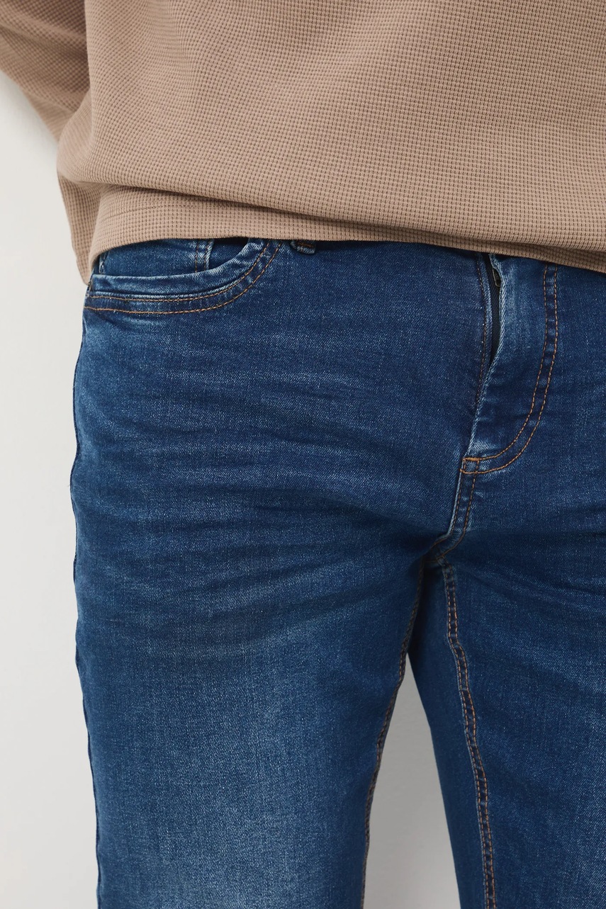 - Fason slim - jeansy o dopasowanym kroju z wąską nogawką, zarówno w okolicach ud, jak i kostki. Podkreślają naturalną linię sylwetki, lecz jej nie opinają - są komfortowe w codziennym użytkowaniu.