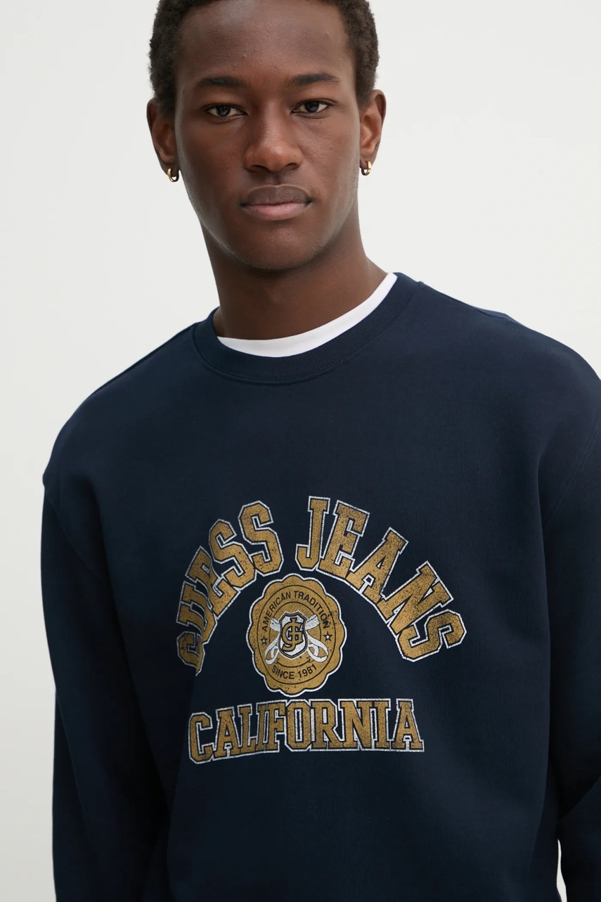 Guess Jeans bluza bawełniana męska kolor granatowy z nadrukiem M5RQ40 KCPR1