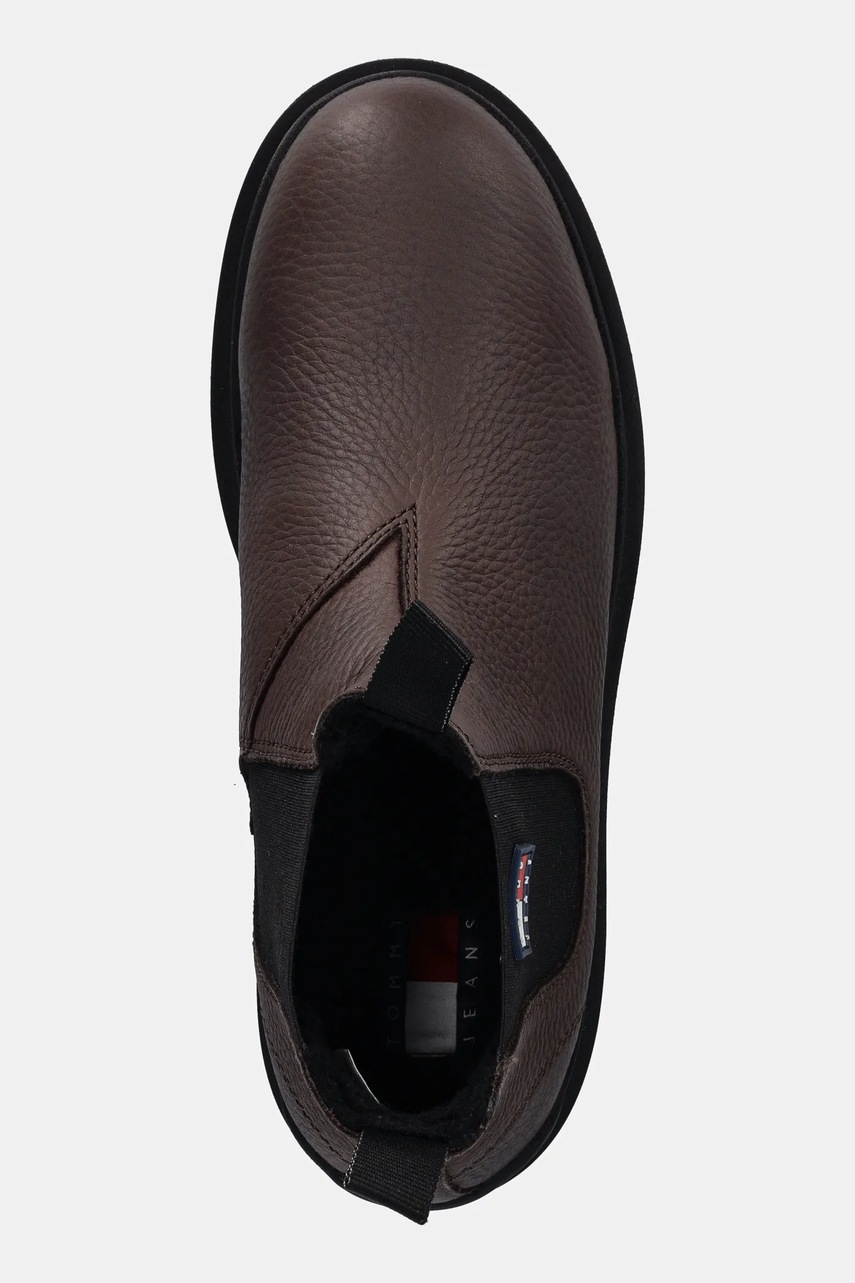 Tommy Jeans sztyblety skórzane TJM CHELSEA LEATHER WL męskie kolor brązowy EM0EM01670