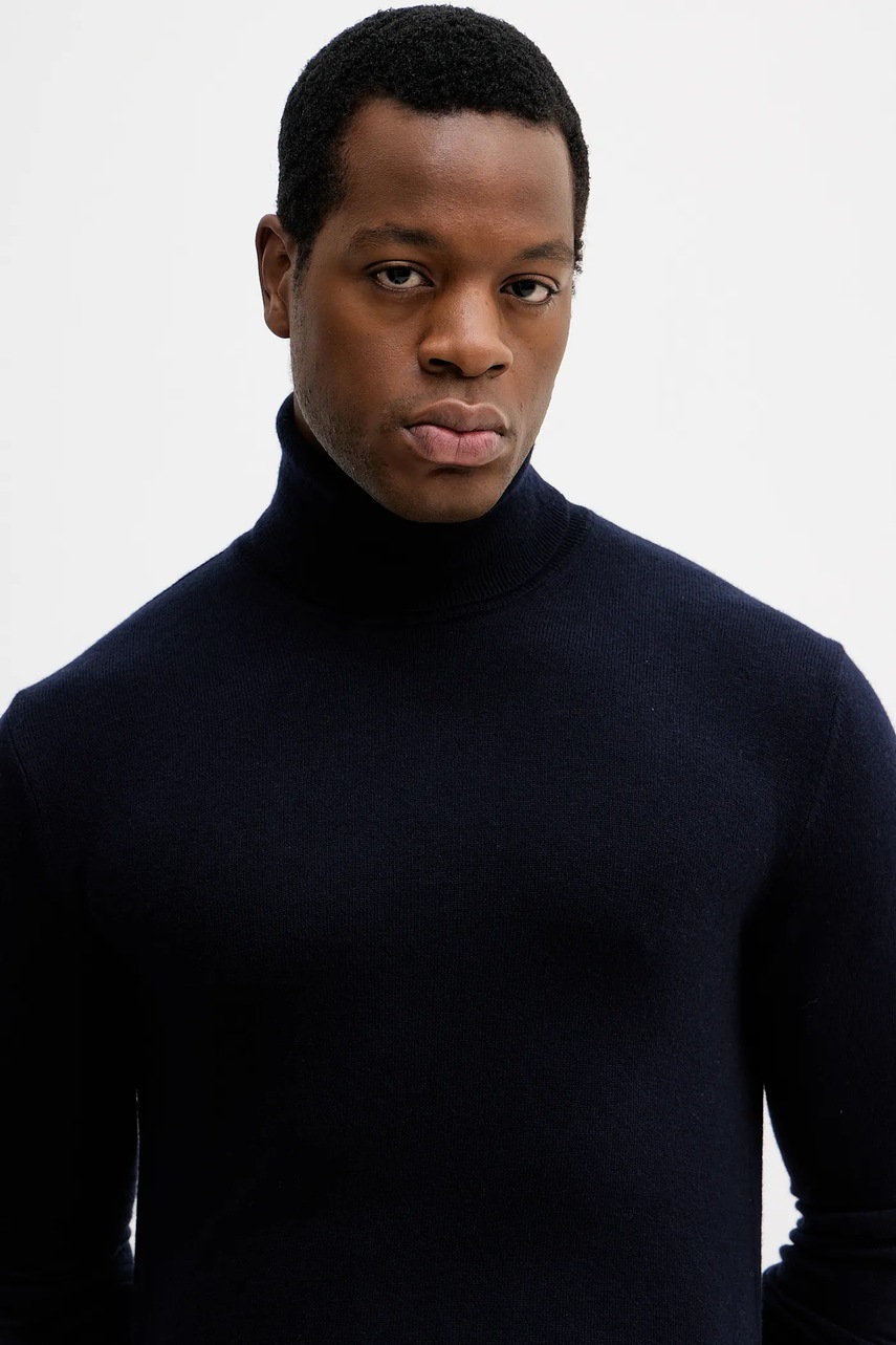 Sisley sweter z domieszką wełny męski kolor granatowy lekki z golferm 102HS2177