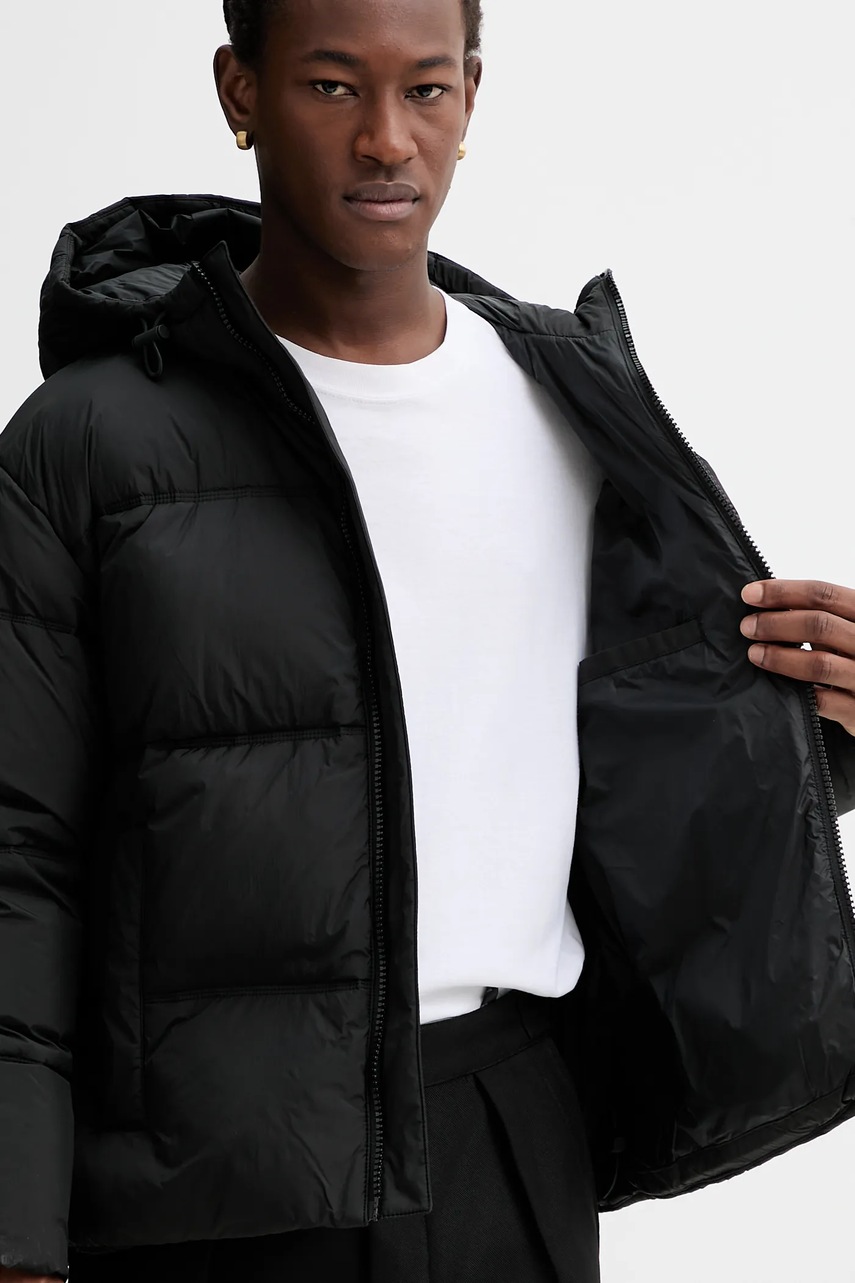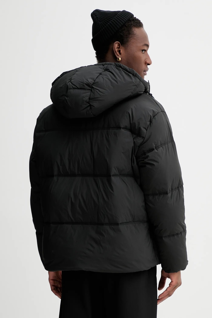 - Podwyższony kołnierz i nieodpinany kaptur gwarantują dodatkową ochronę przed chłodem.
