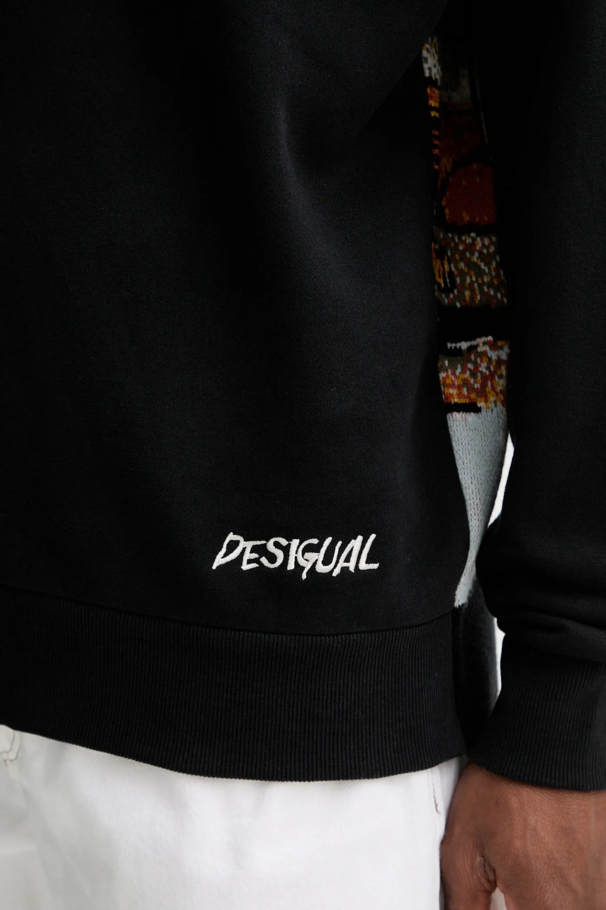 Desigual bluza MIXED DISNEY męska kolor czarny z kapturem wzorzysta 25WMSK15