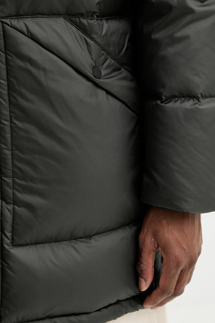 - Wypełnienie z naturalnego puchu z recyklingu, wytwarzanego zgodnie z założeniami certyfikatu RDS (Responsible Down Standard).