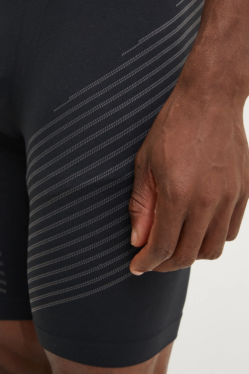 Najważniejsze cechy męskich szortów funkcyjnych Dynafit Speed DryarnFunkcyjne szorty treningowe o kroju slim fit - przylegają do ciała, zapewniając wsparcie mięśni oraz minimalizując ryzyko otarć podczas ruchuStrefowa konstrukcja wspierająca kluczowe partie ciała - skutecznie modeluje uda i pośladki, gwarantując komfort oraz swobodę podczas dynamicznych ćwiczeńElastyczny 4-way stretch z technologią Q-Skin i Dryarn - materiał rozciągający się w czterech kierunkach gwarantuje pełną mobilność, oddychalność oraz szybkie odprowadzanie wilgociAntybakteryjne wykończenie z jonami srebra - zapobiega powstawaniu nieprzyjemnych zapachów i dba o świeżość nawet podczas wielogodzinnego treninguNiska gramatura (83 g) i płaskie szwy - ultralekka konstrukcja oraz bezuciskowe łączenia eliminują ryzyko podrażnień skóryStandardowa długość typu kolarki - sięgające do połowy uda nogawki zapewniają optymalne wsparcie mięśni oraz komfort termicznyElastyczna talia z szeroką gumą - utrzymuje szorty na miejscu bez ucisku i konieczności stosowania dodatkowych zapięćWzorzysta tekstura materiału - nowoczesny design podkreśla sportowy charakter produktu i wyróżnia się na tle klasycznych modeliWymiary dla rozmiaru L: szerokość w pasie - 36 cm, wysokość stanu - 21 cm, długość nogawki - 45 cm.