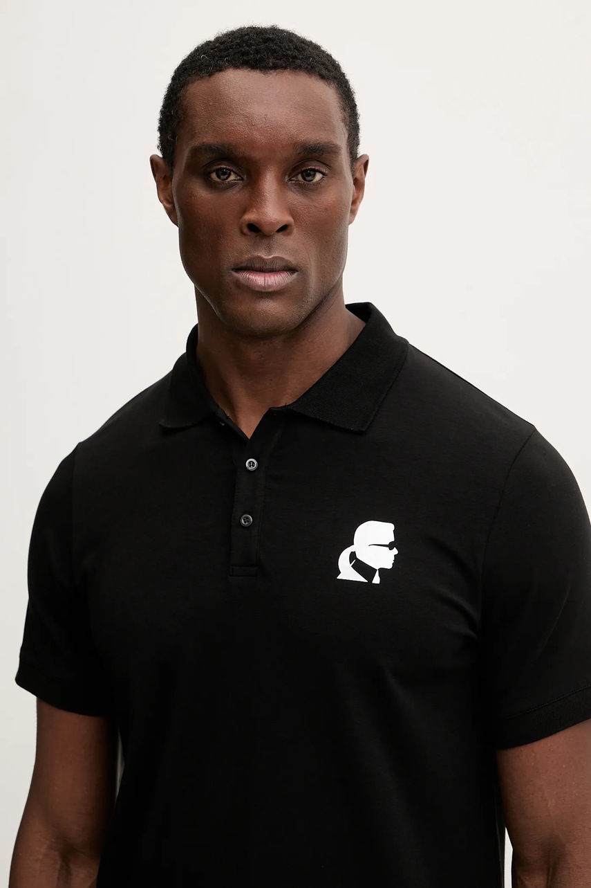 Karl Lagerfeld polo męski kolor czarny z nadrukiem 554235.745401