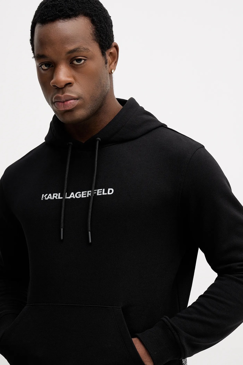 Karl Lagerfeld bluza bawełniana męska kolor czarny z kapturem z nadrukiem 554917.705404