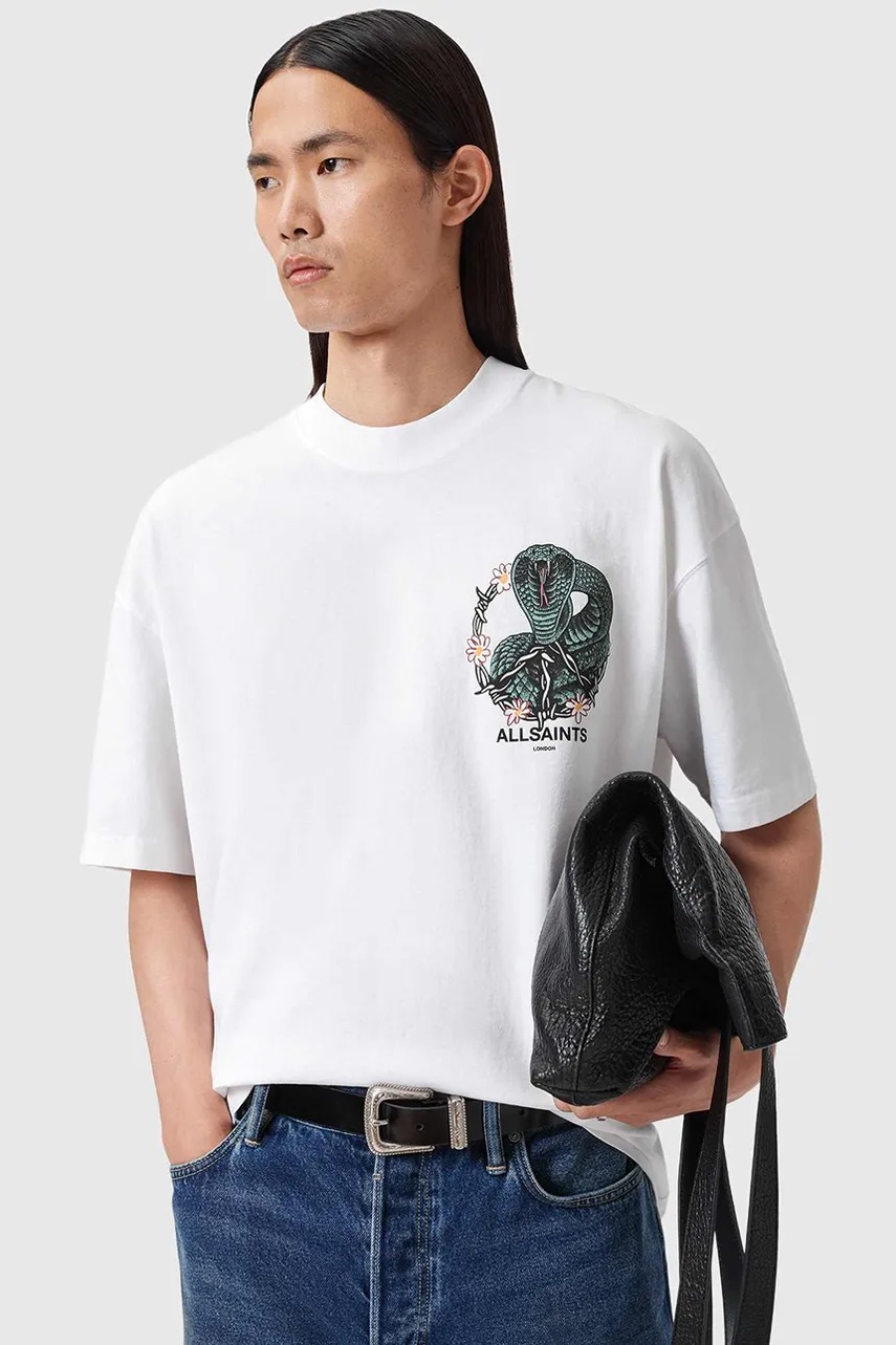 AllSaints t-shirt bawełniany męski kolor biały z nadrukiem M032PD