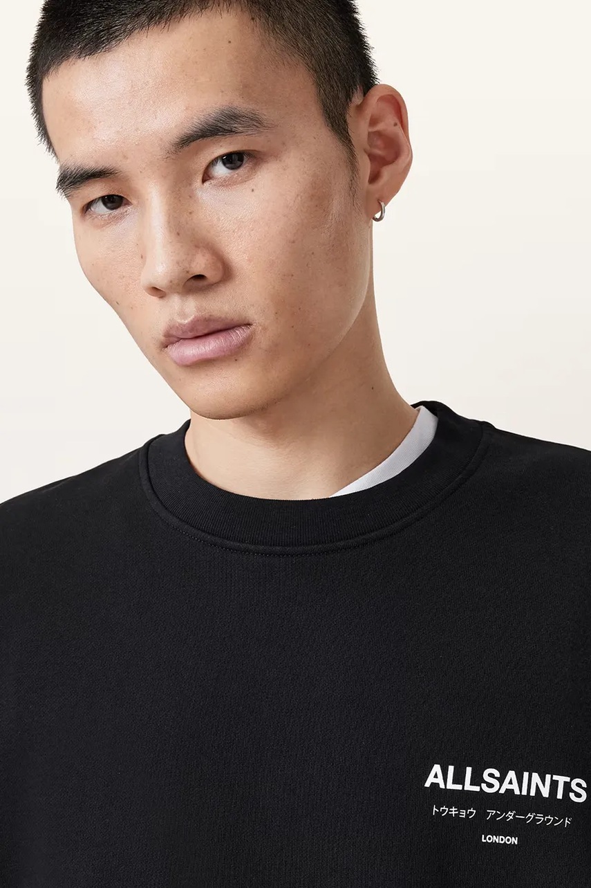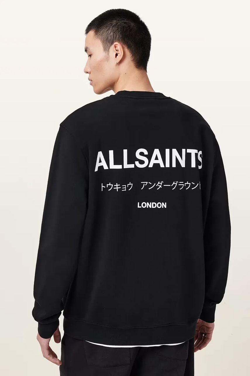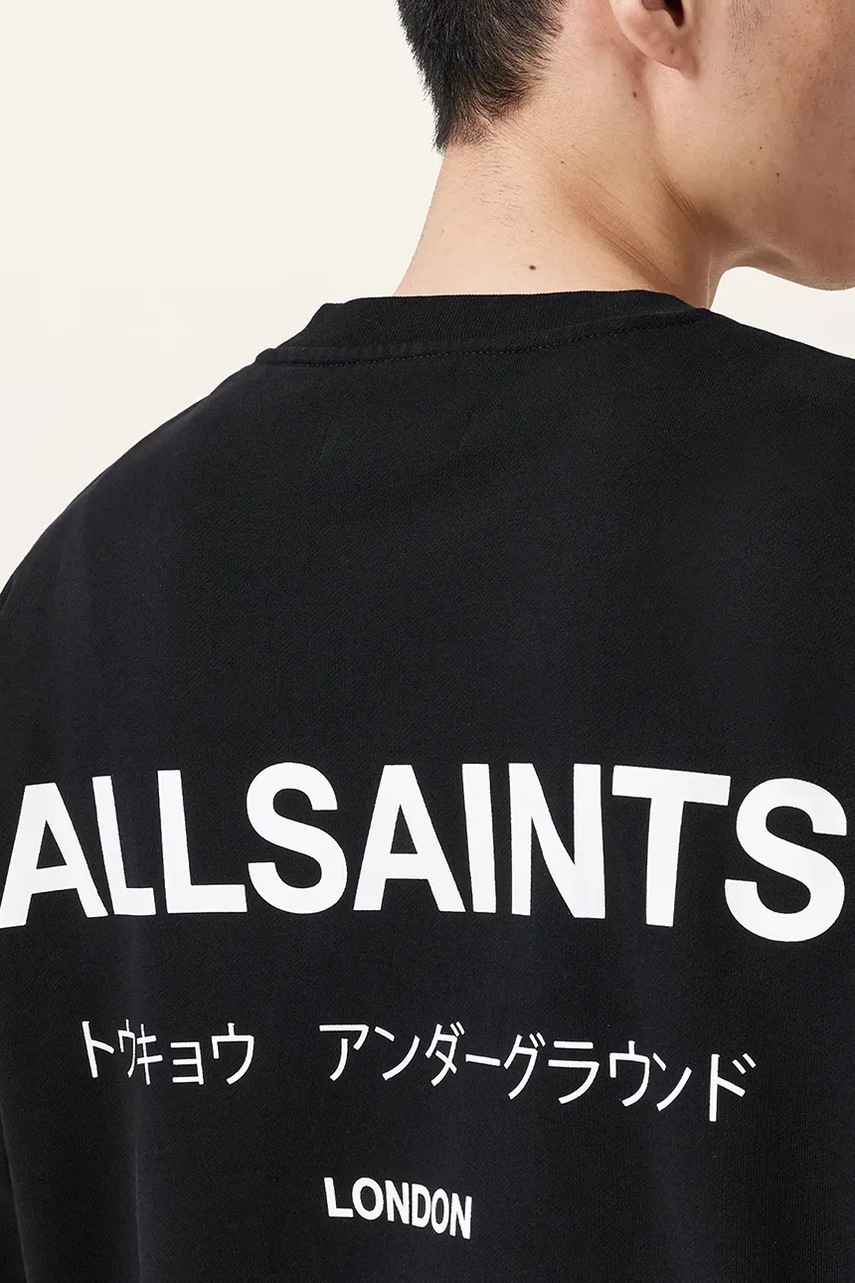 AllSaints bluza bawełniana UNDERGROUND męska kolor czarny z nadrukiem M033NB