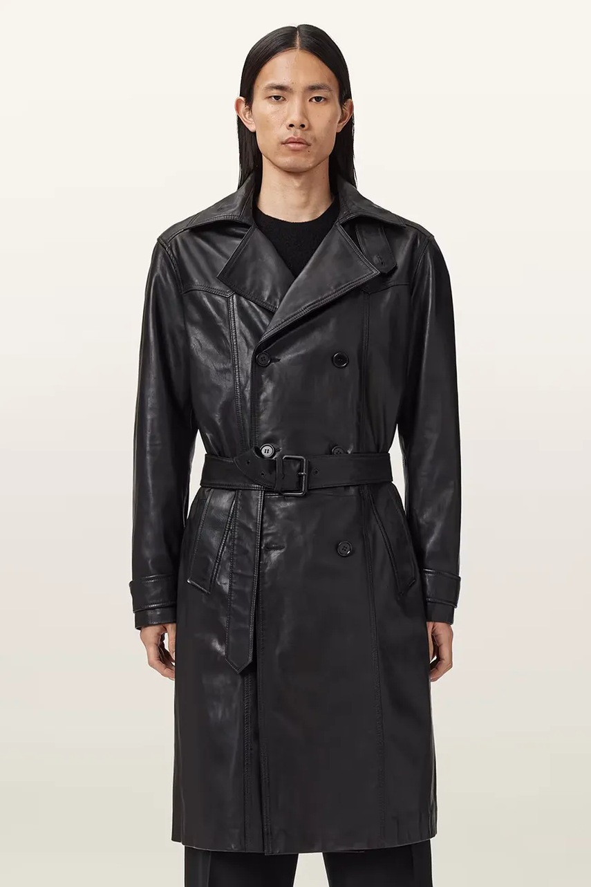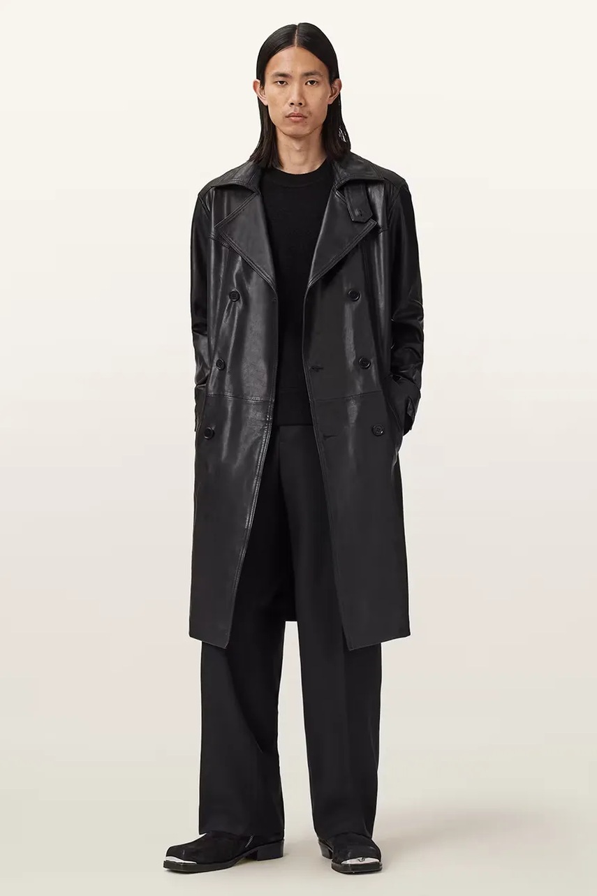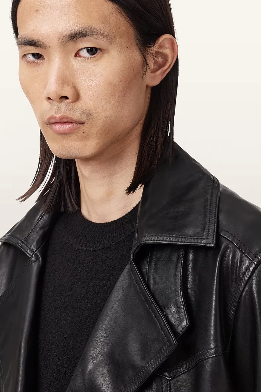 AllSaints trencz skórzany KELLETT kolor czarny M026LD