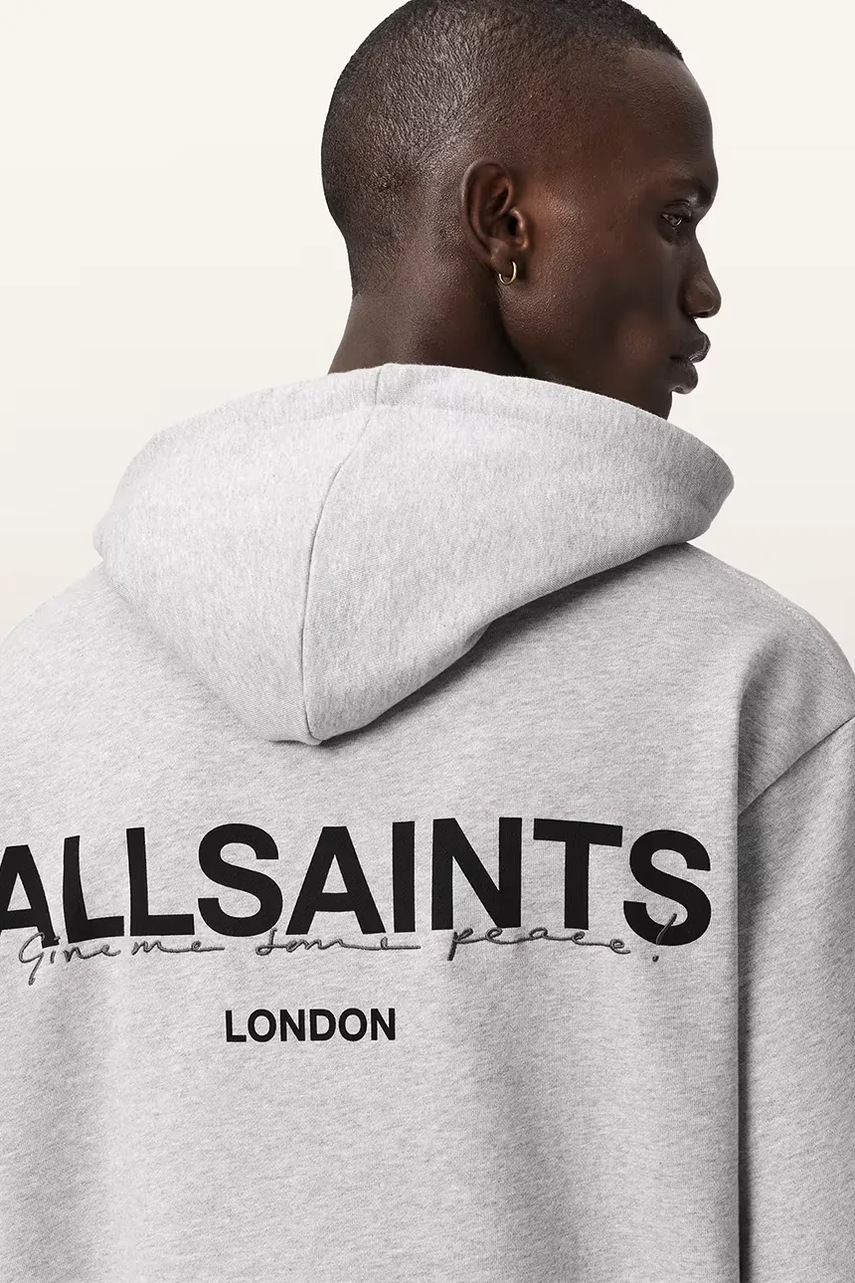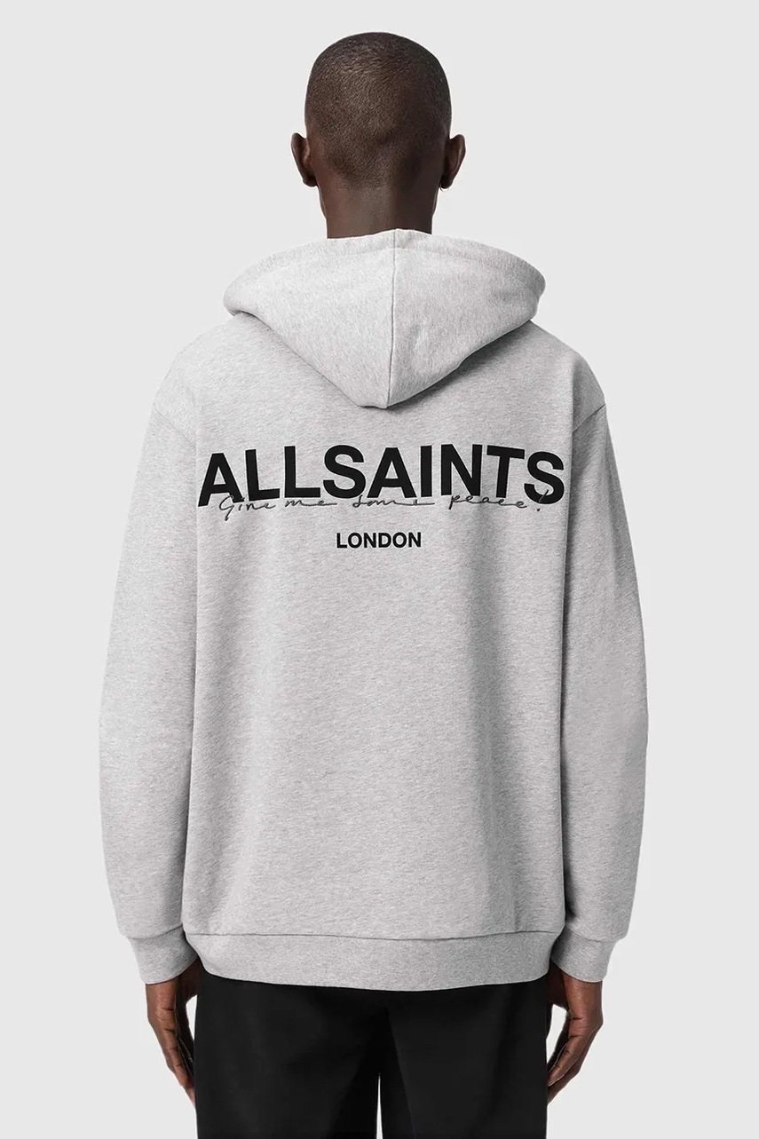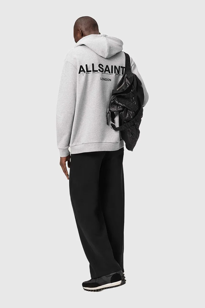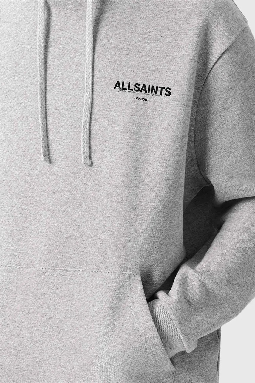 AllSaints bluza bawełniana męska kolor szary z kapturem wzorzysta M022ND