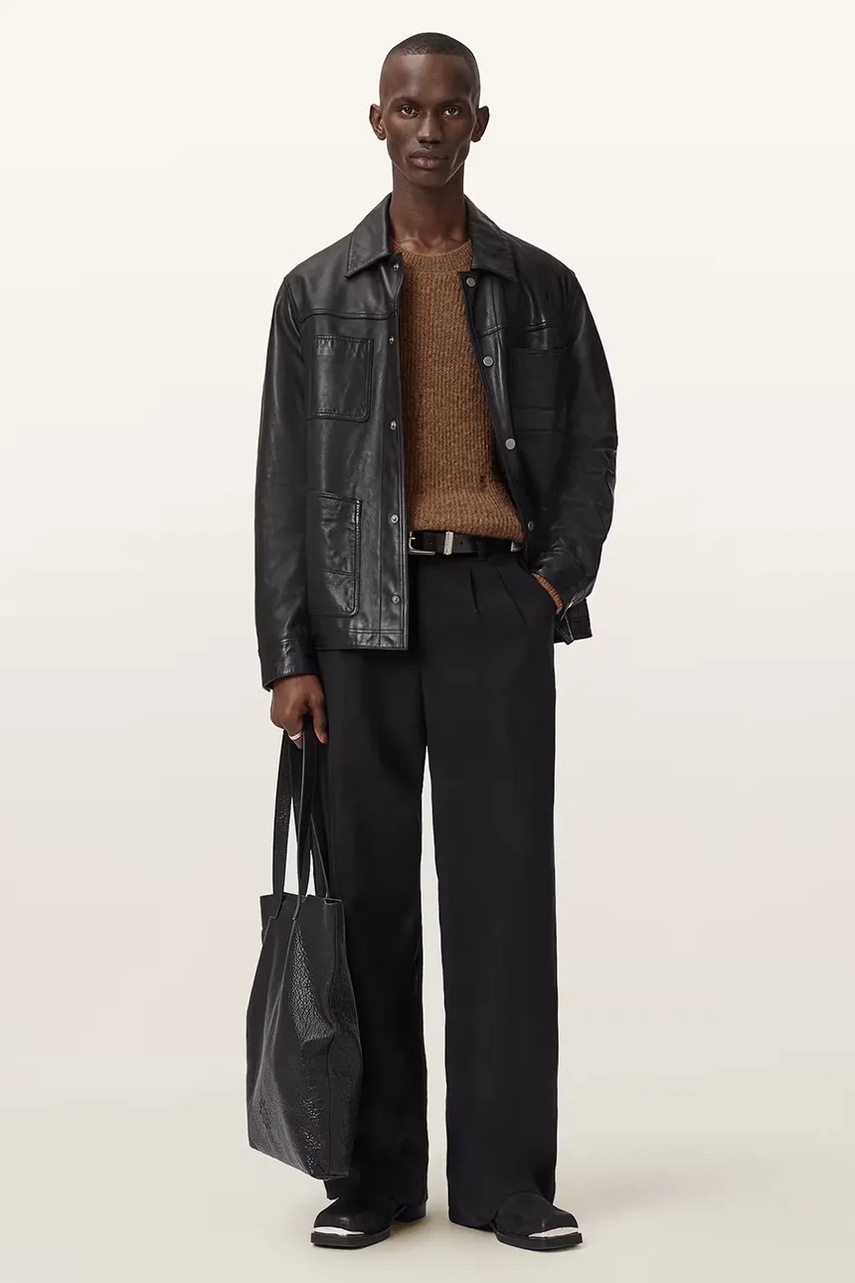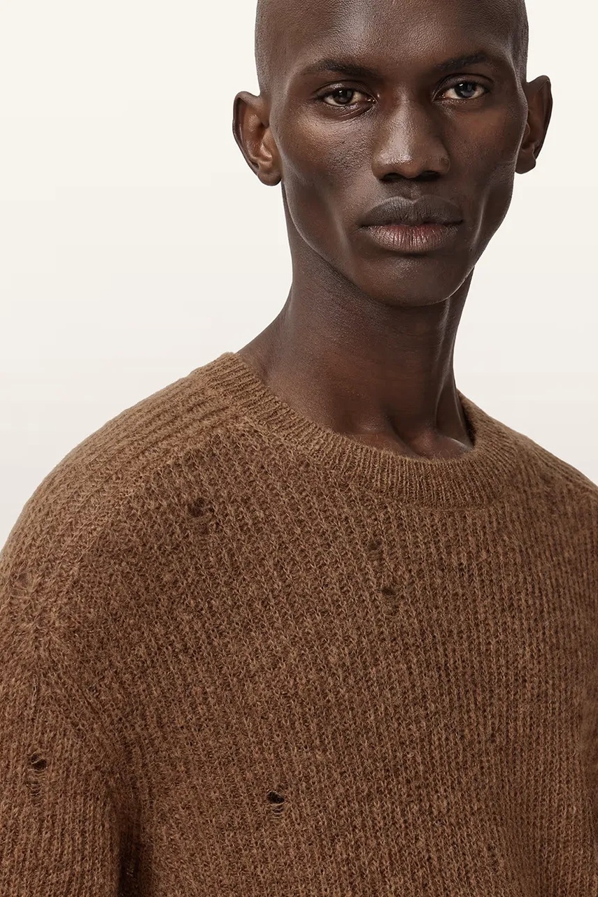 AllSaints sweter z dodatkiem wełny męski kolor brązowy M028KD