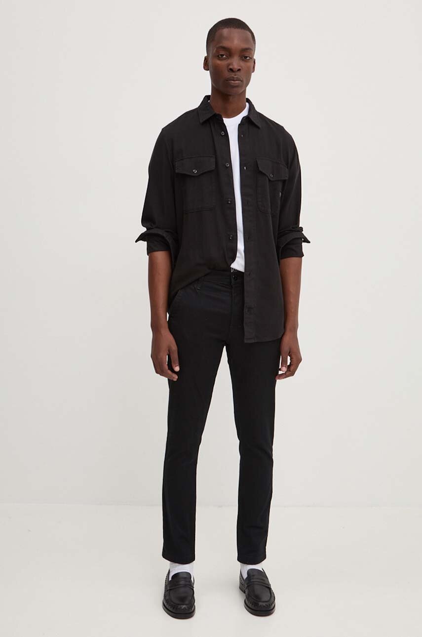 G-Star koszula bawełniana męska kolor czarny regular z kołnierzykiem klasycznym