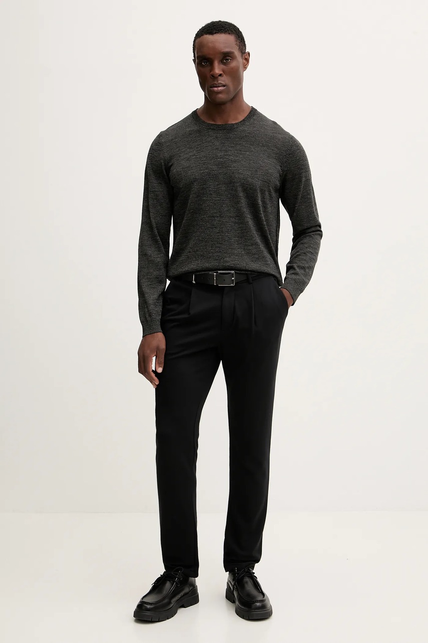 BOSS sweter wełniany męski kolor szary lekki 50468239