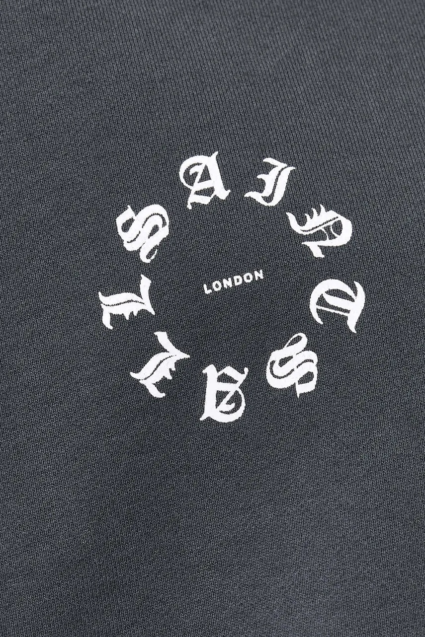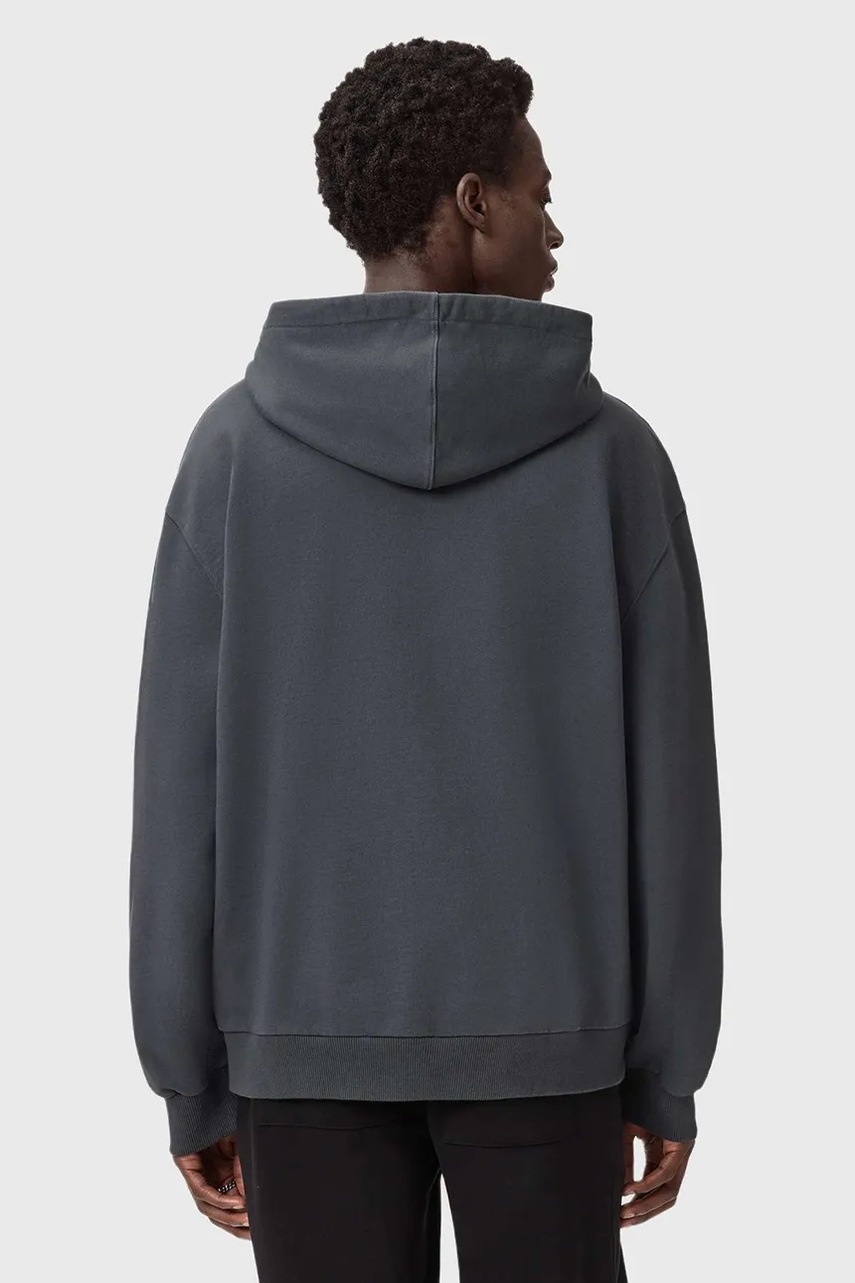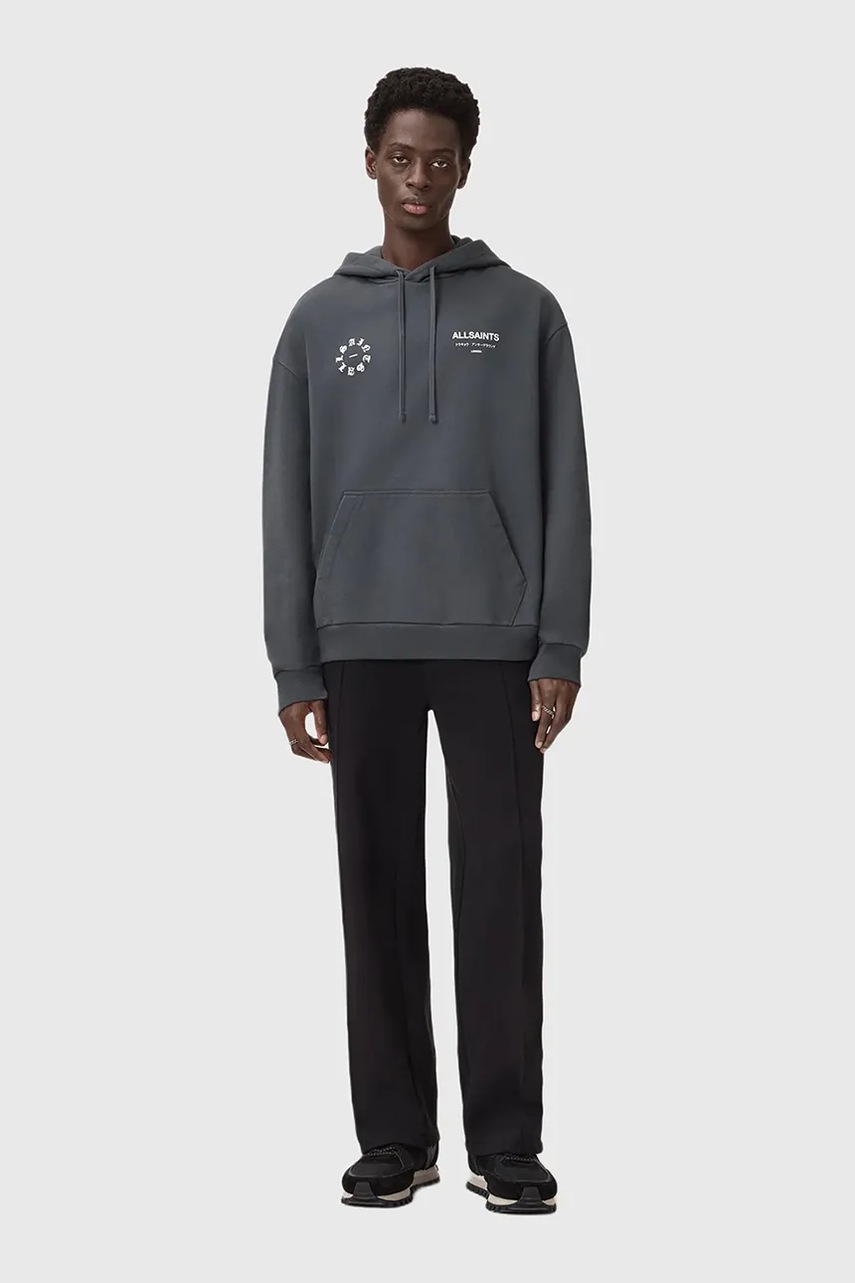AllSaints bluza bawełniana męska kolor czarny z kapturem wzorzysta M018ND