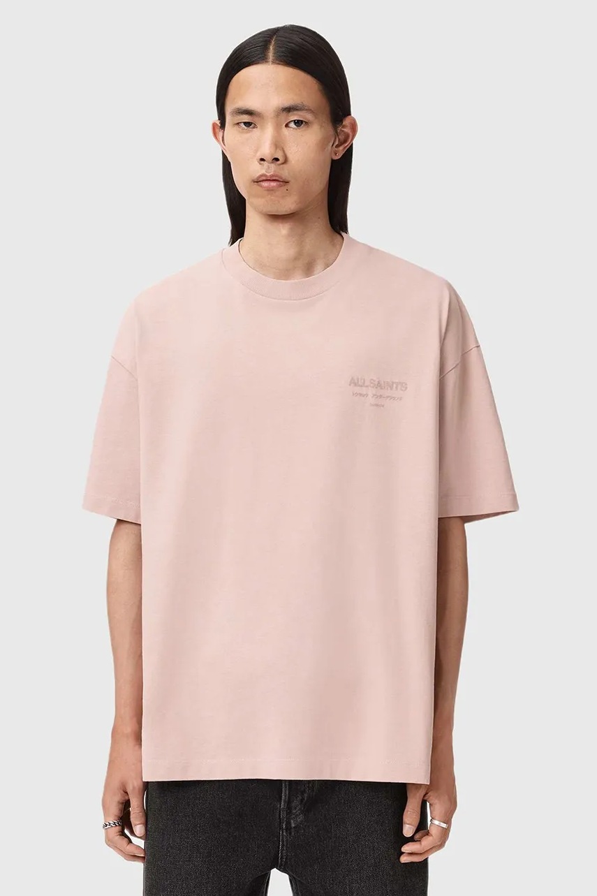 AllSaints t-shirt bawełniany UNDERGROUND męski kolor różowy gładki M071PB