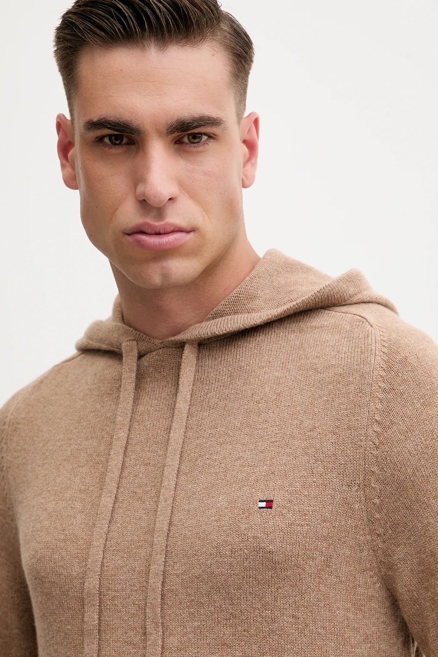 Tommy Hilfiger sweter wełniany męski kolor brązowy MW0MW40438