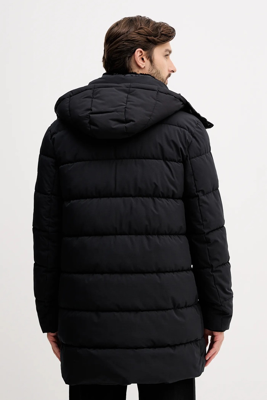 - Podwyższony kołnierz i odpinany kaptur gwarantują dodatkową ochronę przed chłodem.