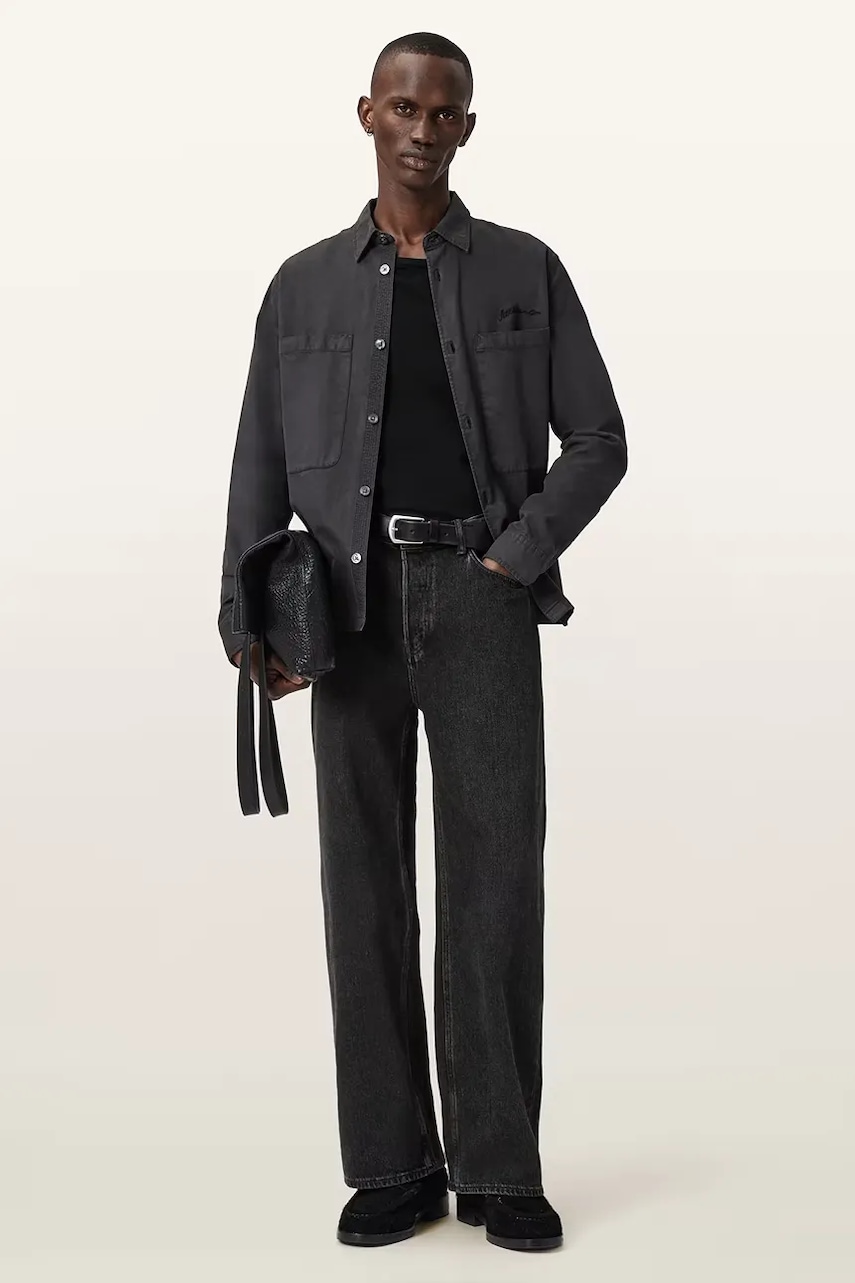 AllSaints koszula męska kolor szary regular z kołnierzykiem klasycznym M076SD
