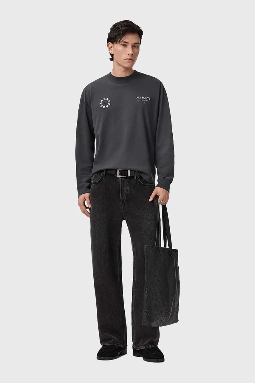 AllSaints longsleeve bawełniany kolor szary wzorzysty M043PD