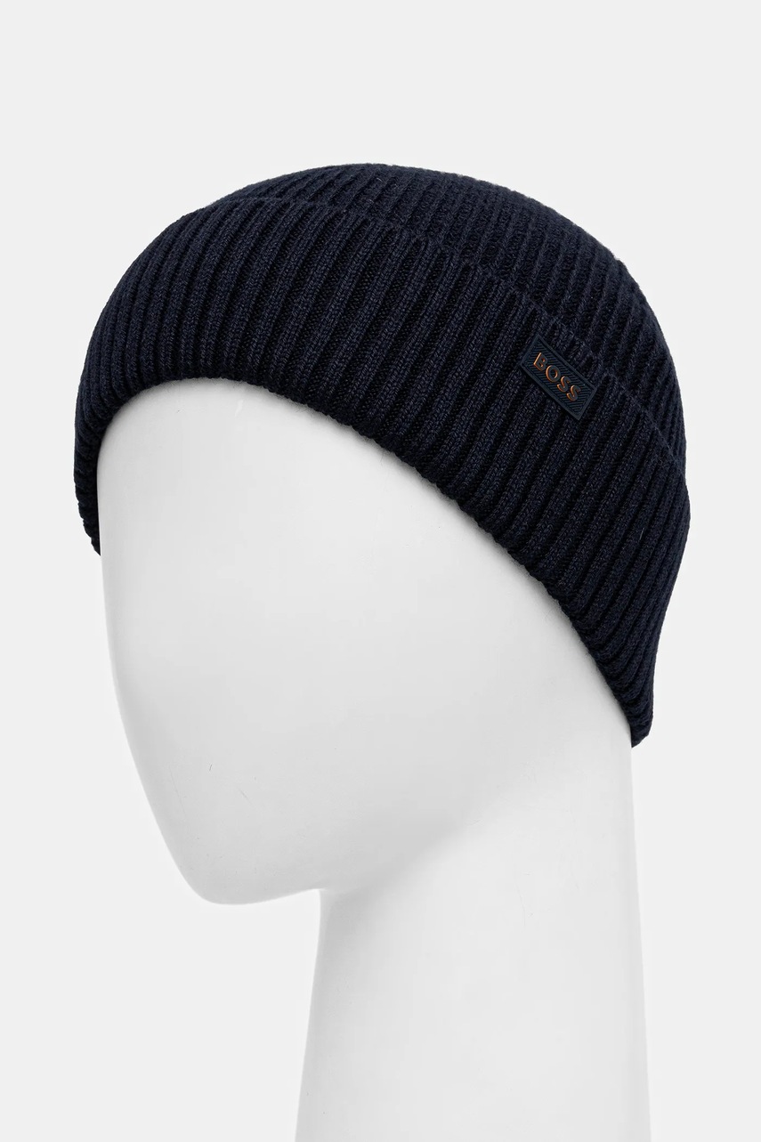 BOSS Orange czapka z dodatkiem wełny kolor granatowy 50551019