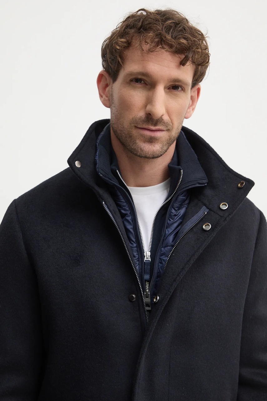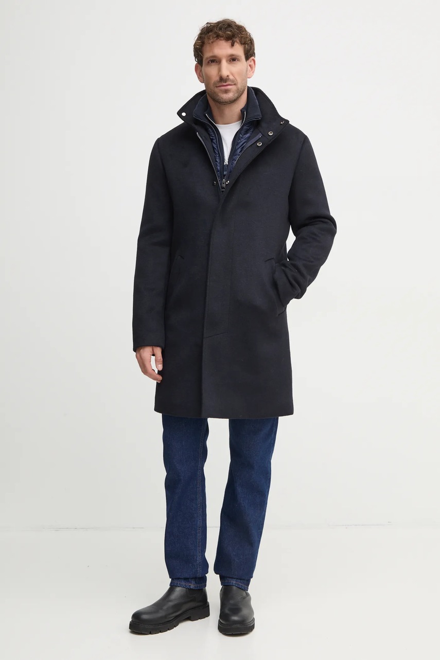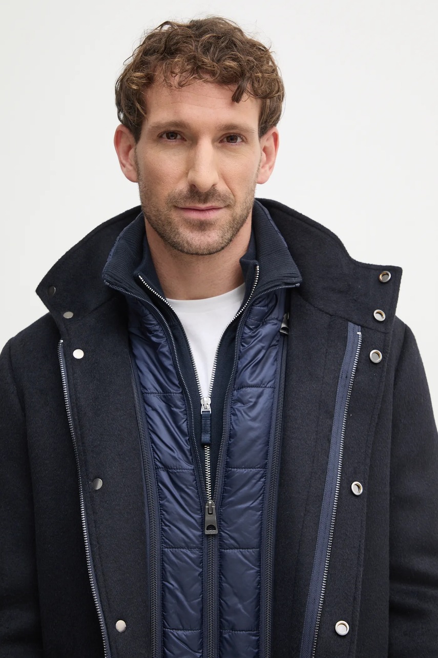 Guess płaszcz z domieszką wełny URBAN kolor granatowy przejściowy M4BL30.WGJ82