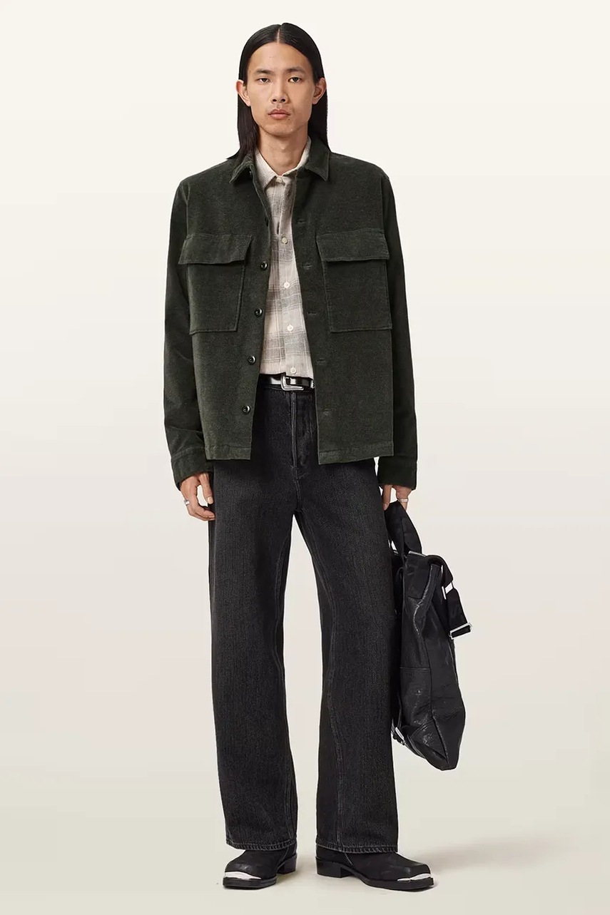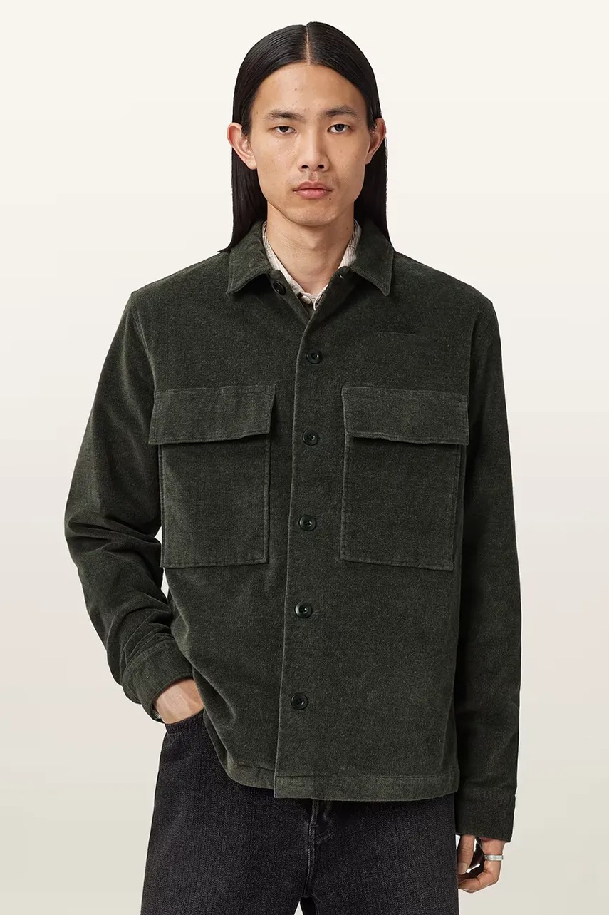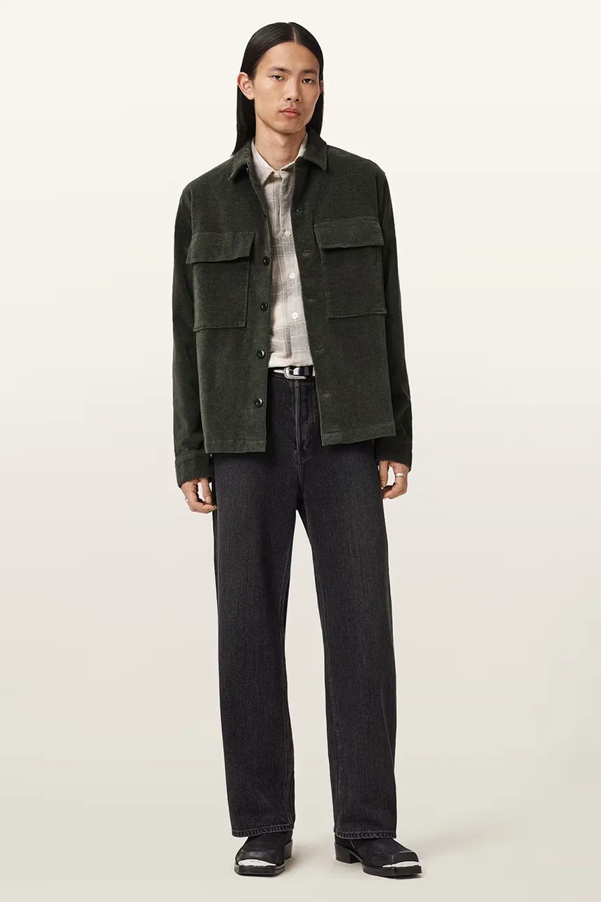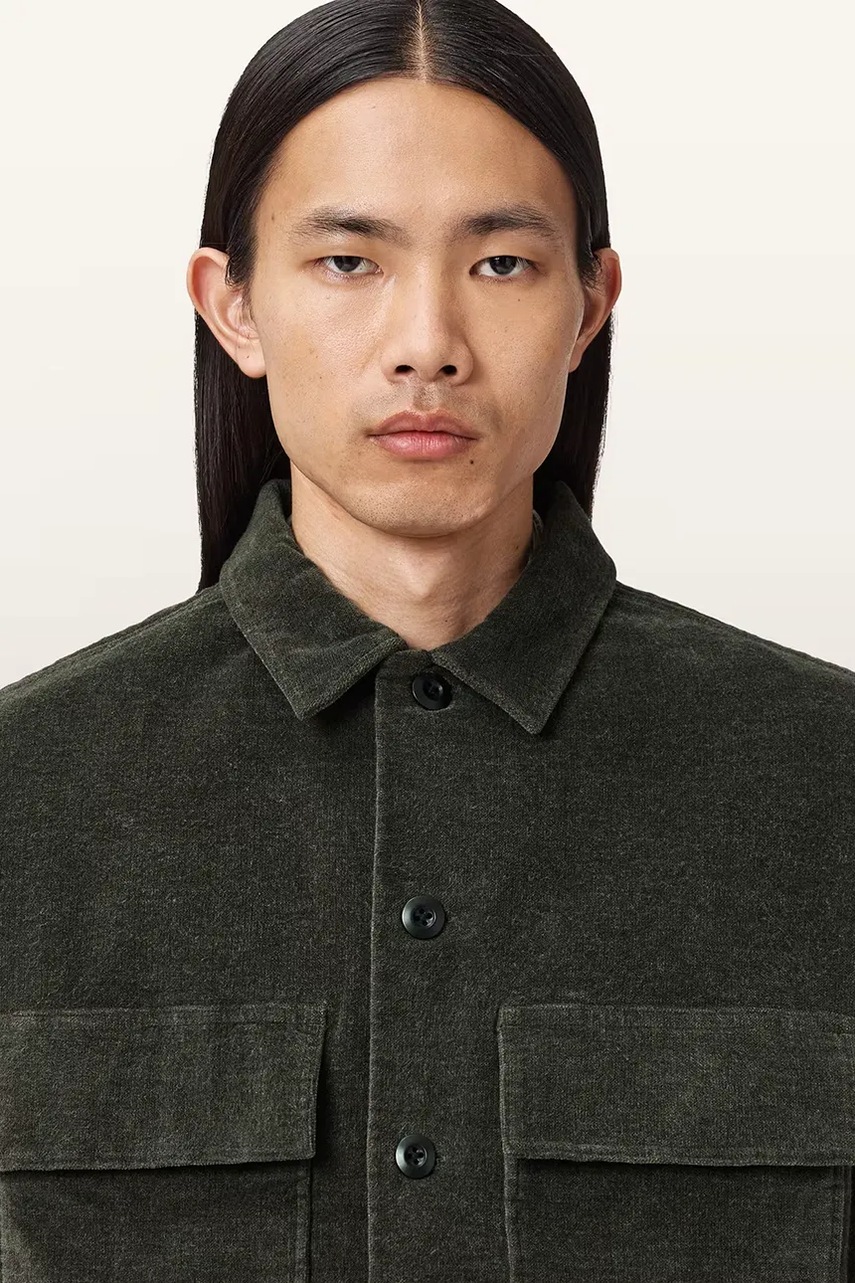 AllSaints koszula HAWKER męska kolor zielony regular z kołnierzykiem klasycznym M017SD
