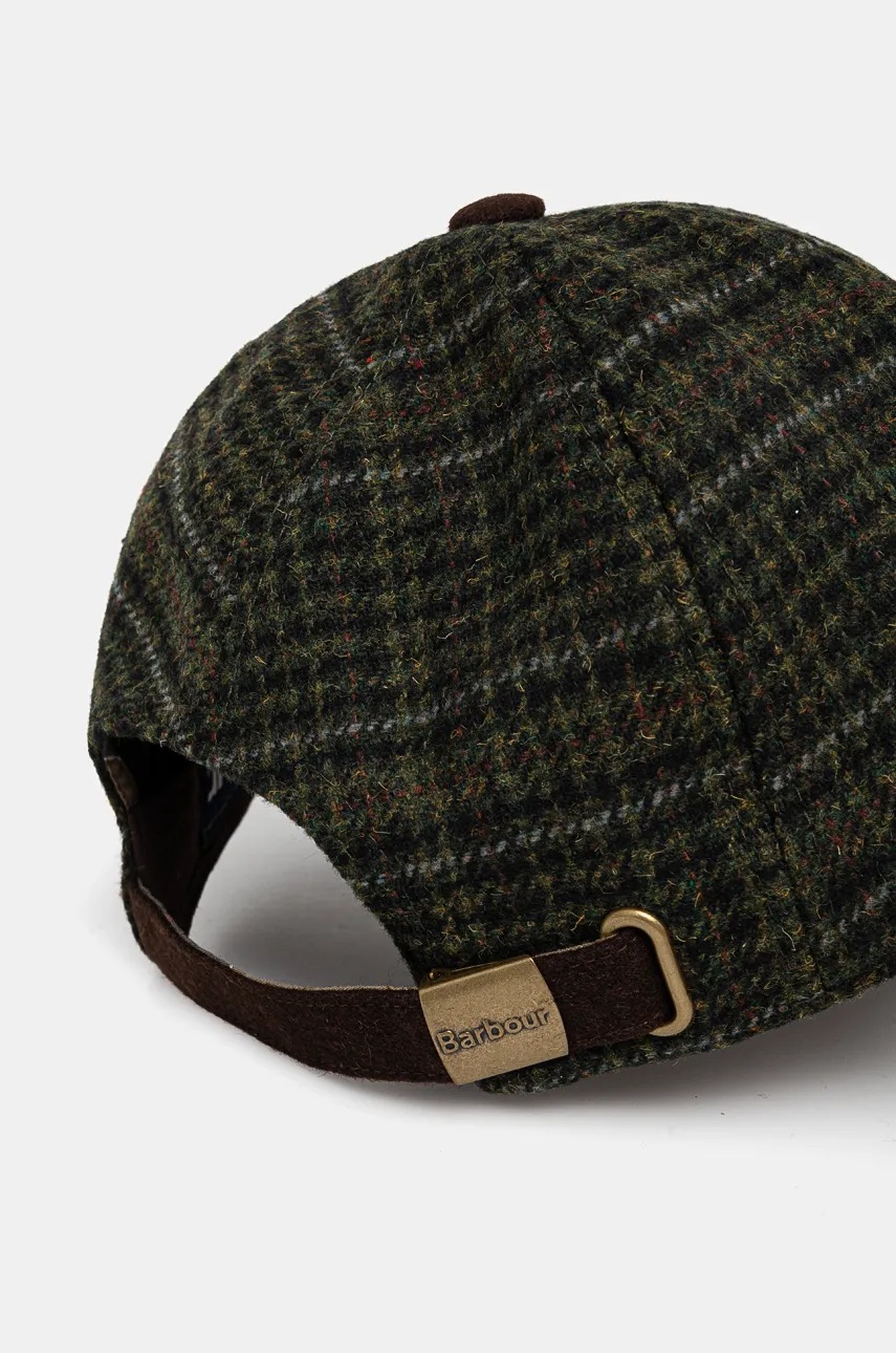 Barbour czapka z daszkiem wełniana kolor zielony wzorzysta MHA0867