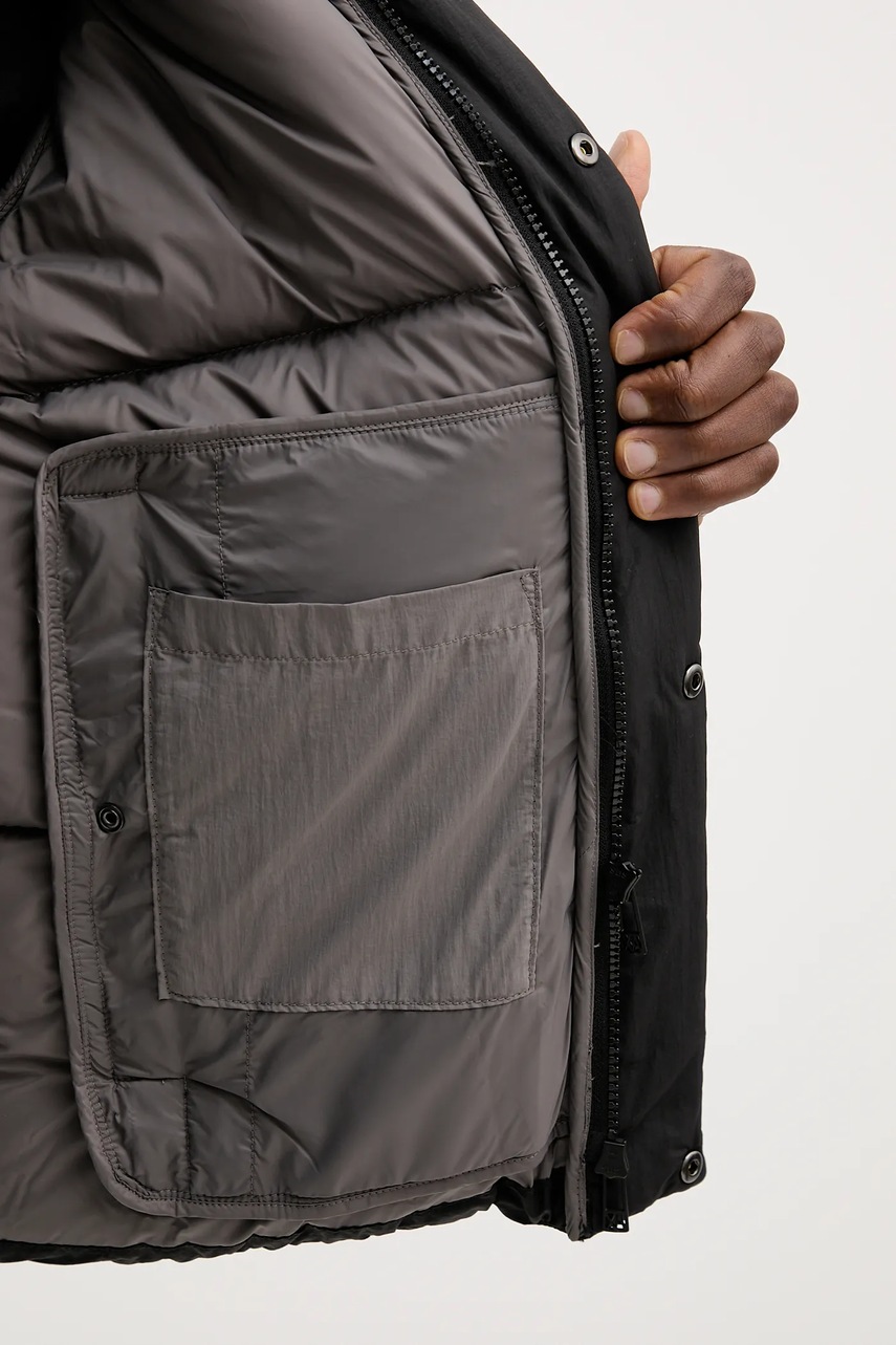 - Podwyższony kołnierz i odpinany kaptur gwarantują dodatkową ochronę przed chłodem.