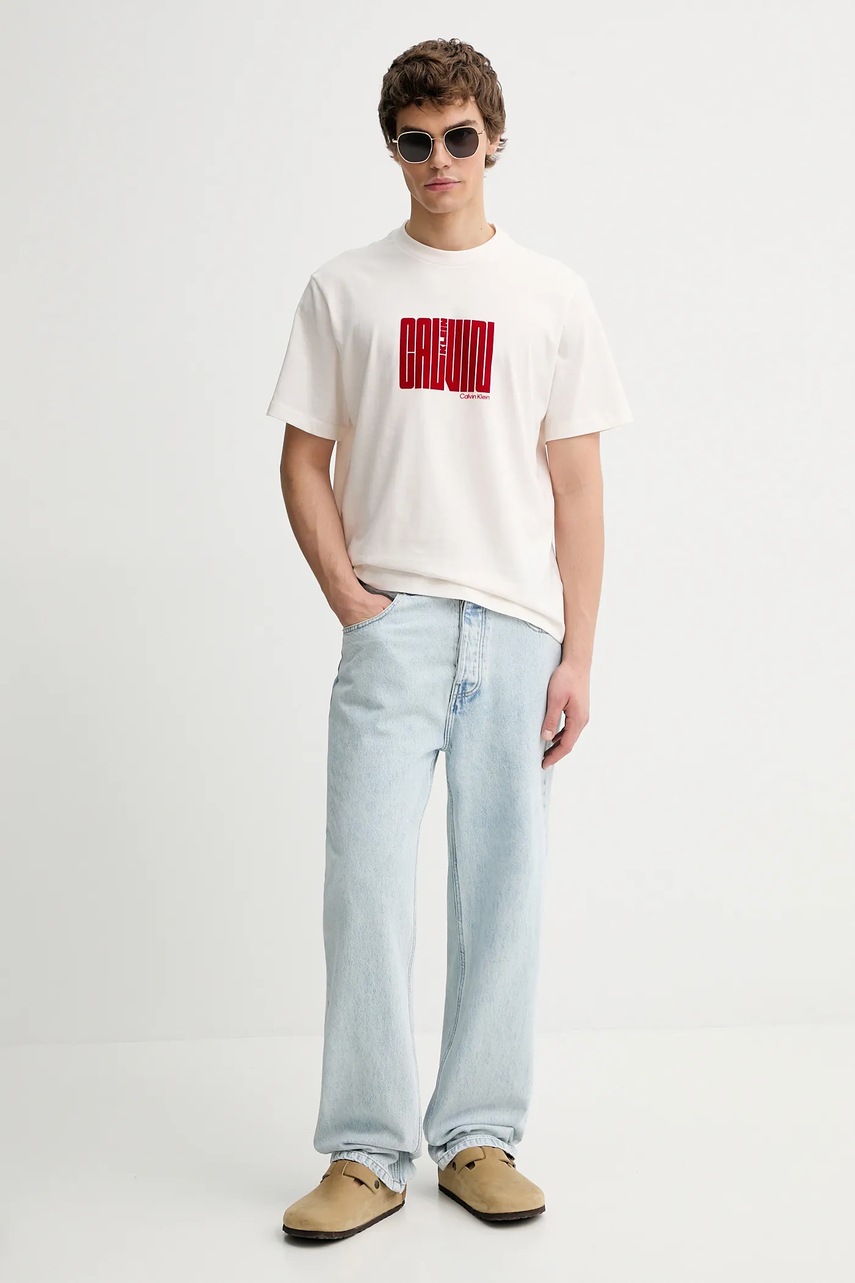 Calvin Klein t-shirt bawełniany męski kolor beżowy z nadrukiem LV04RE832G
