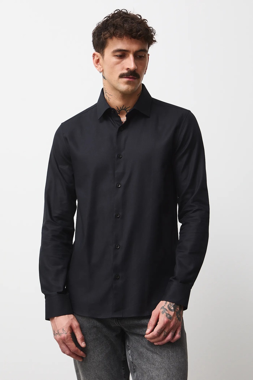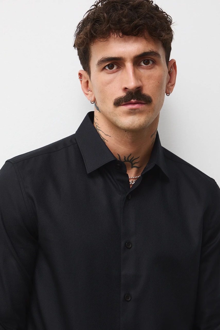 Medicine koszula męska kolor czarny slim z kołnierzykiem klasycznym