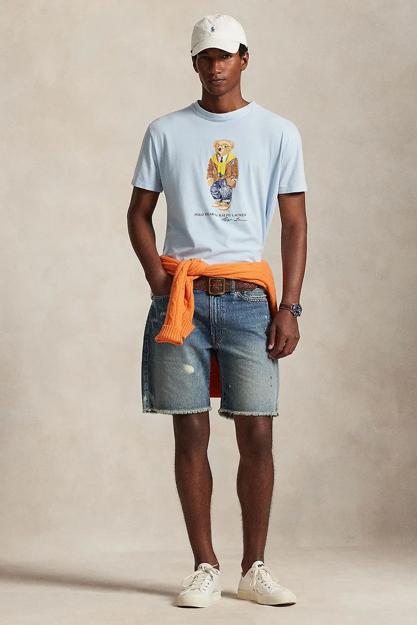 Polo Ralph Lauren t-shirt bawełniany męski kolor niebieski z nadrukiem 710P07347