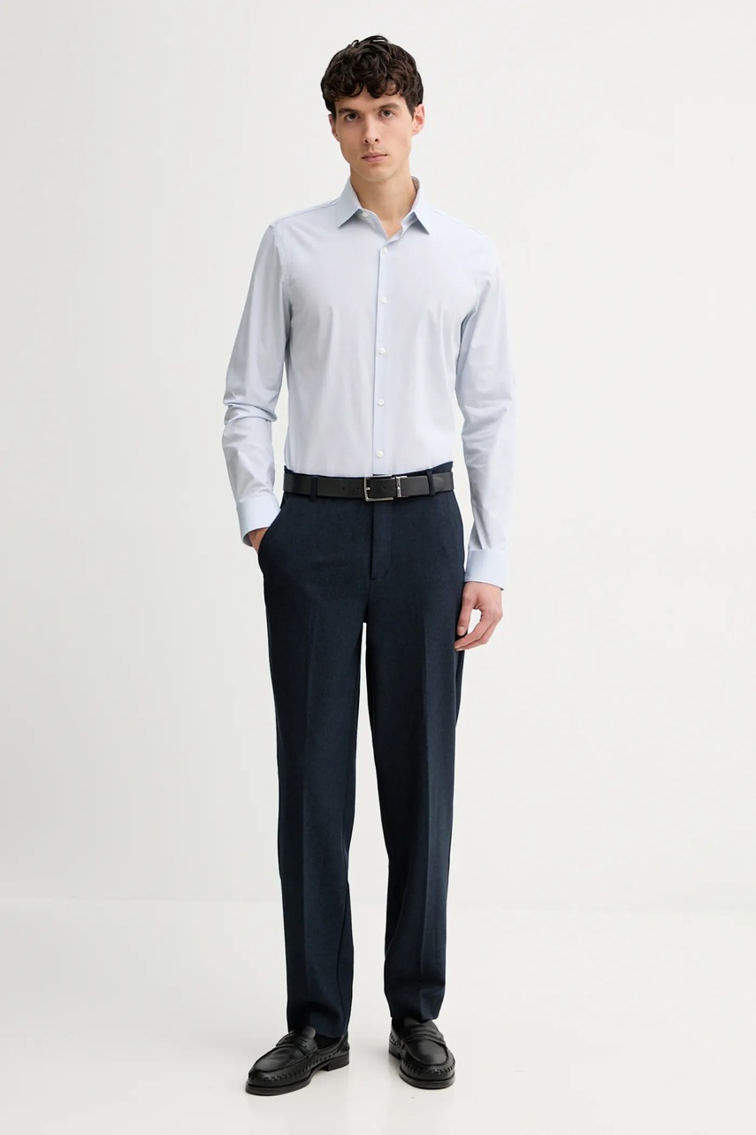 Calvin Klein koszula męska kolor niebieski slim z kołnierzykiem klasycznym LV019EU080