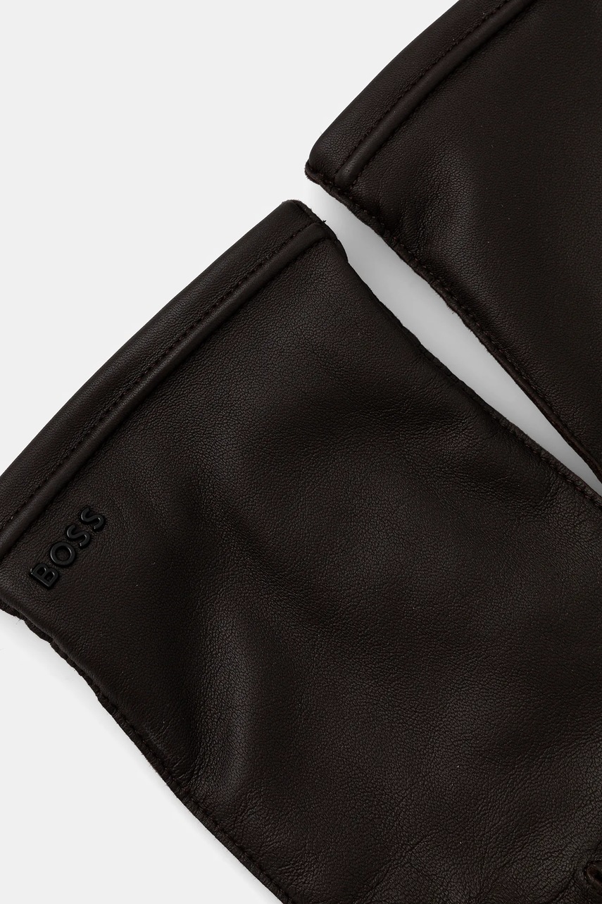 BOSS rękawiczki skórzane męskie kolor brązowy 50526680