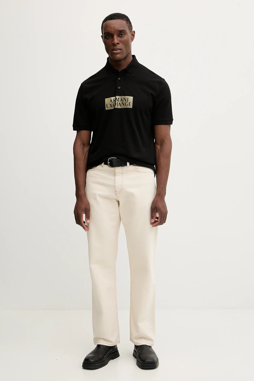Armani Exchange polo bawełniane kolor czarny z nadrukiem XM001885 AF13026