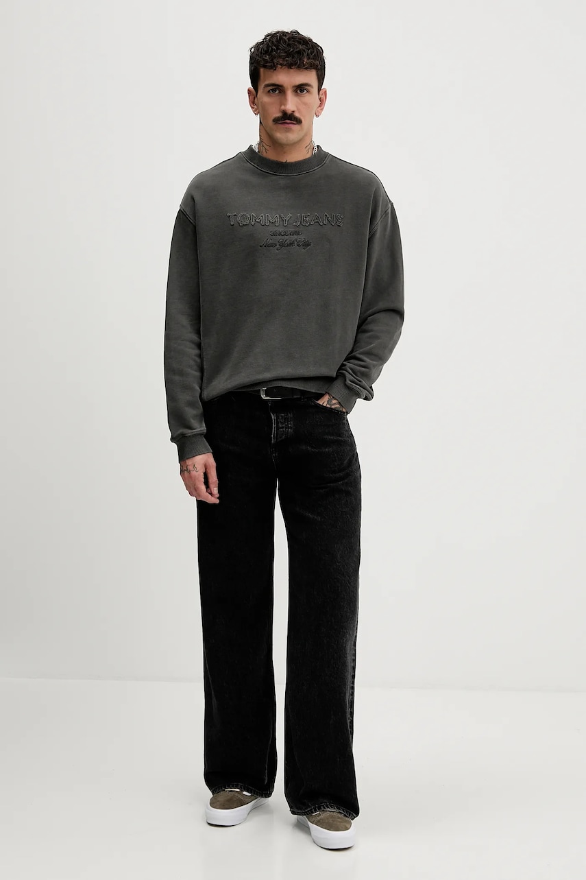Tommy Jeans bluza bawełniana męska kolor szary z aplikacją DM0DM22363