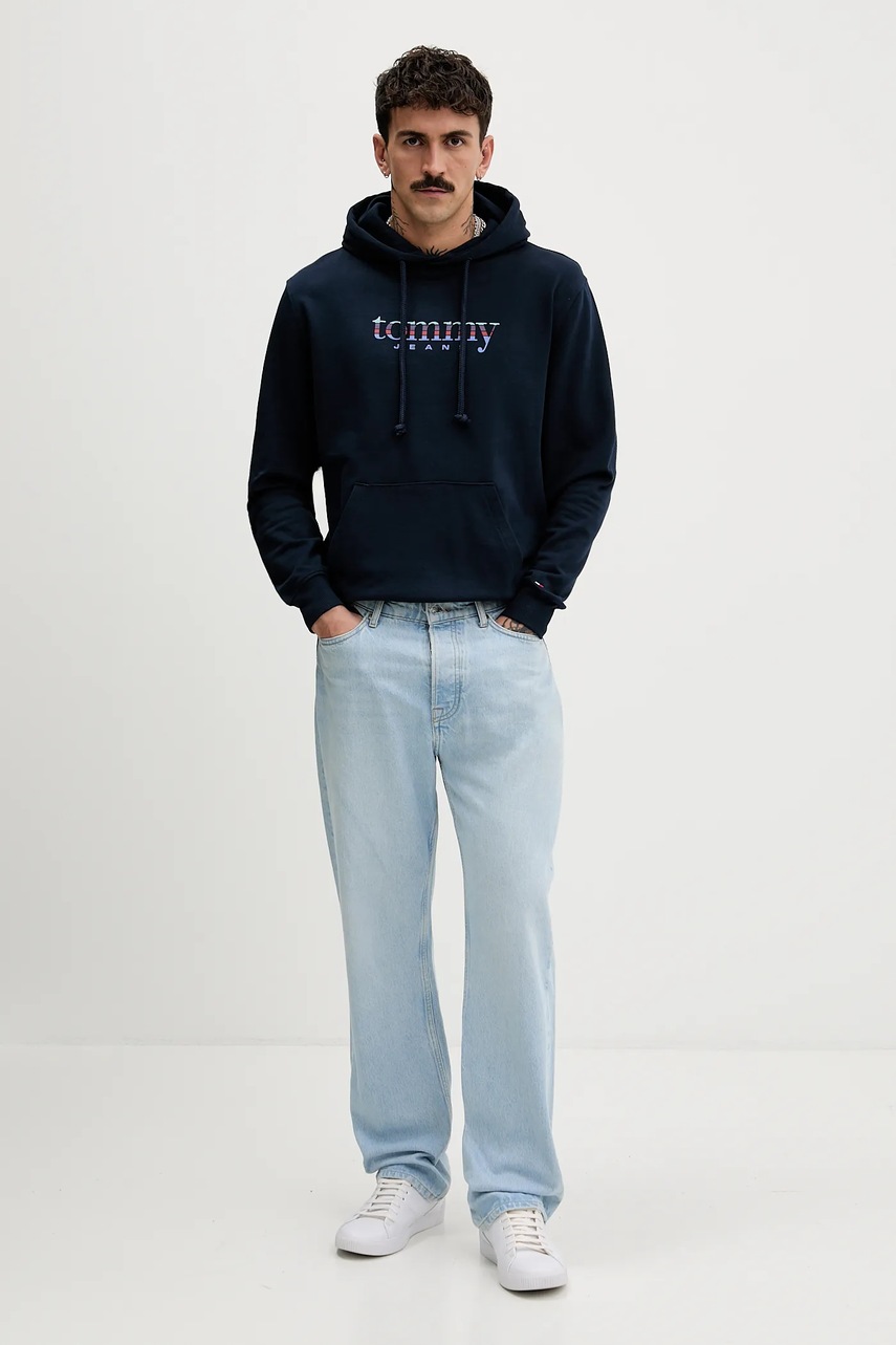 Tommy Jeans bluza bawełniana męska kolor granatowy z kapturem gładka DM0DM22642