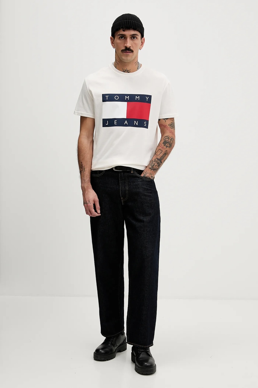 Tommy Jeans t-shirt bawełniany męski kolor beżowy z nadrukiem DM0DM22645