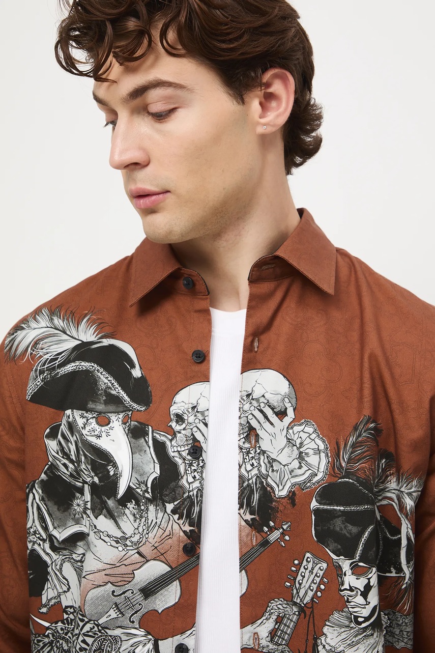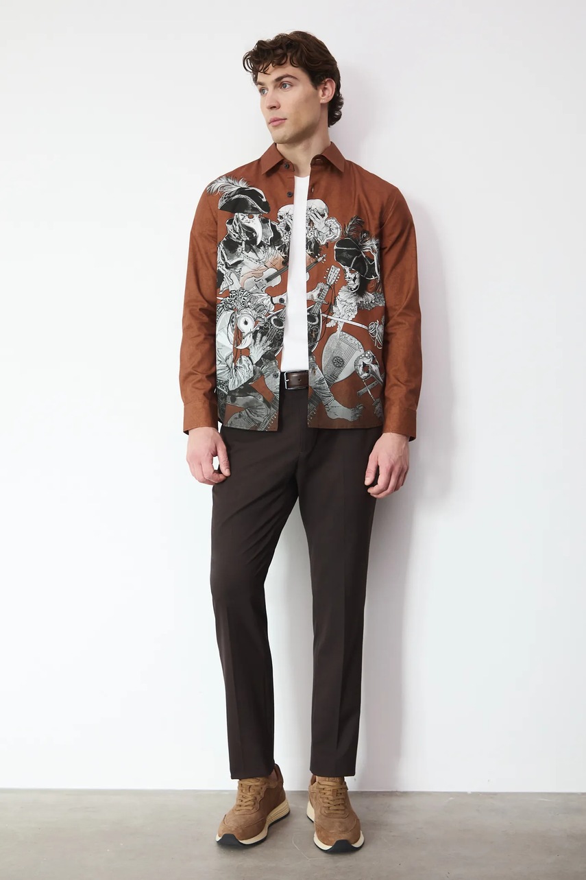 Medicine koszula męska kolor brązowy regular z kołnierzykiem klasycznym