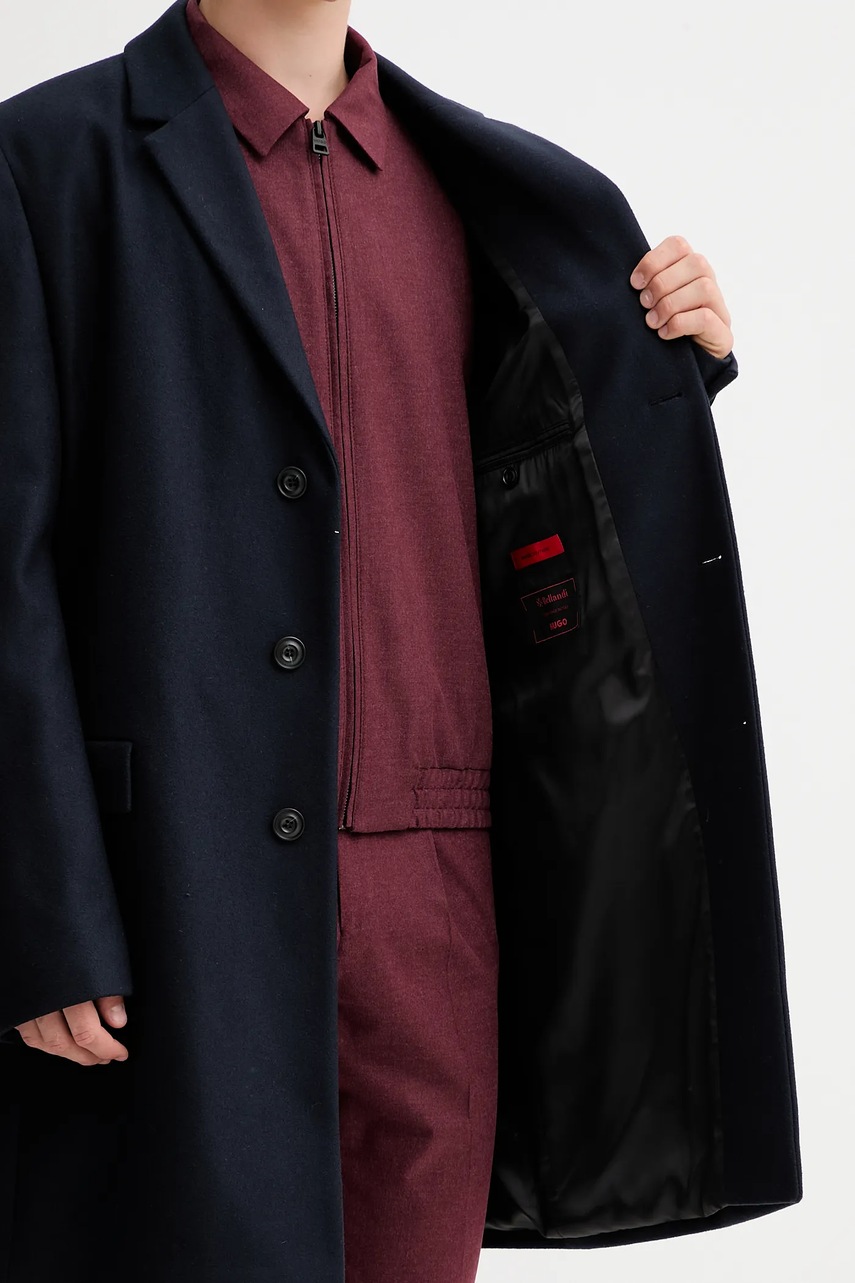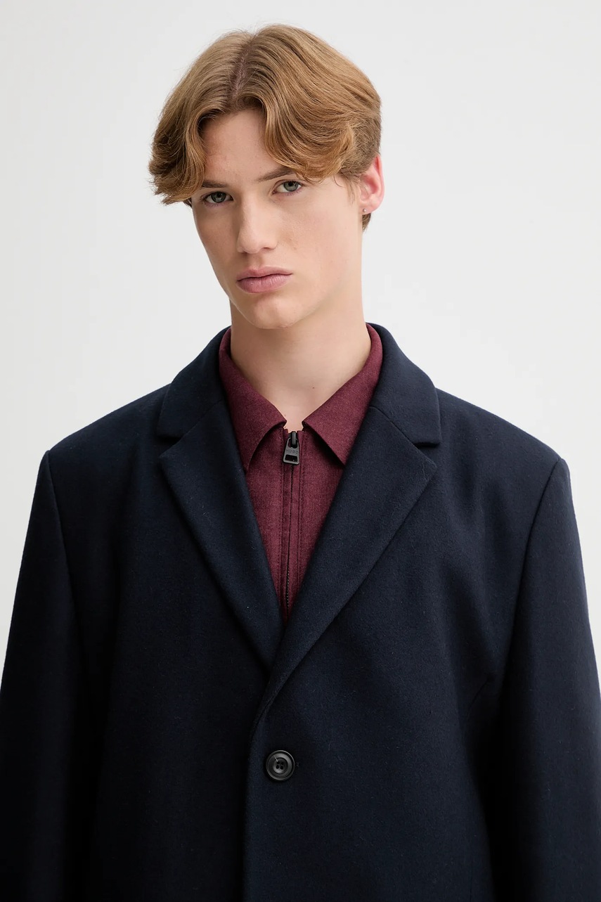 HUGO płaszcz z wełną kolor granatowy 50546528