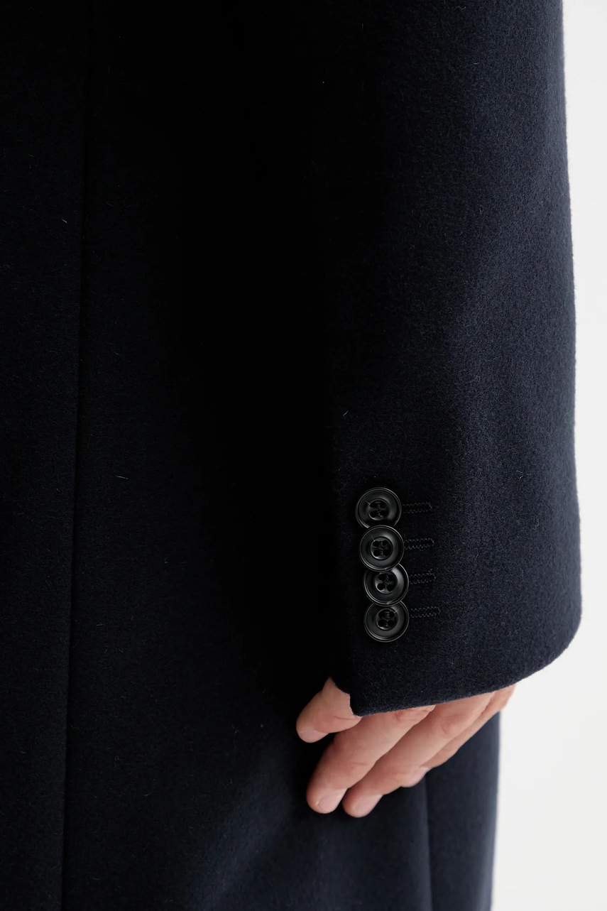 - Jednorzędowe zapięcie na guziki.