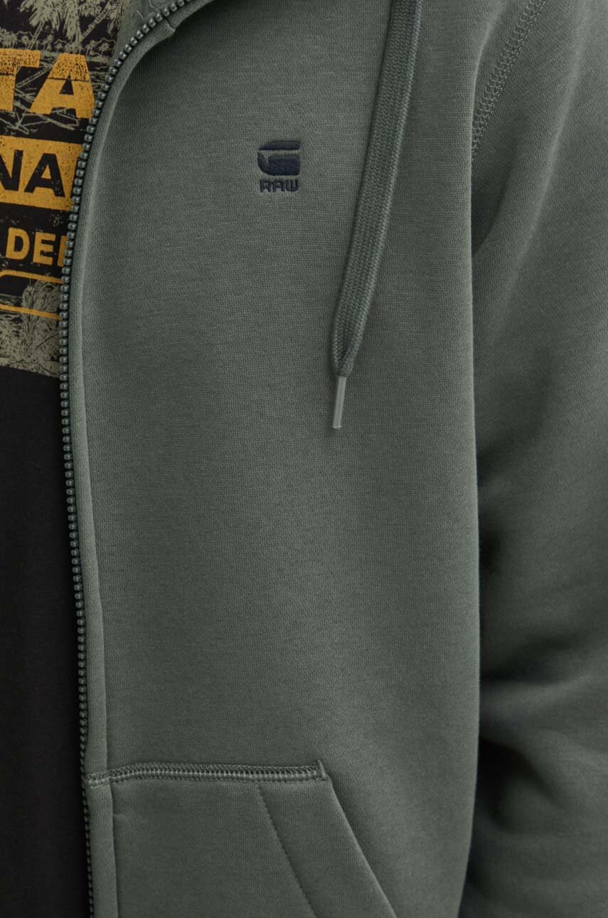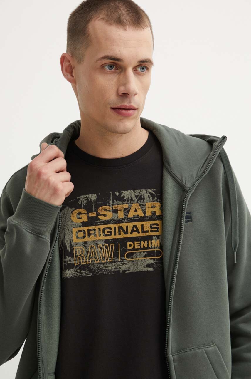 G-Star bluza męska kolor zielony z kapturem gładka