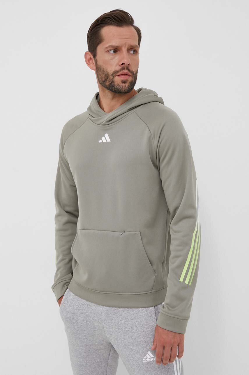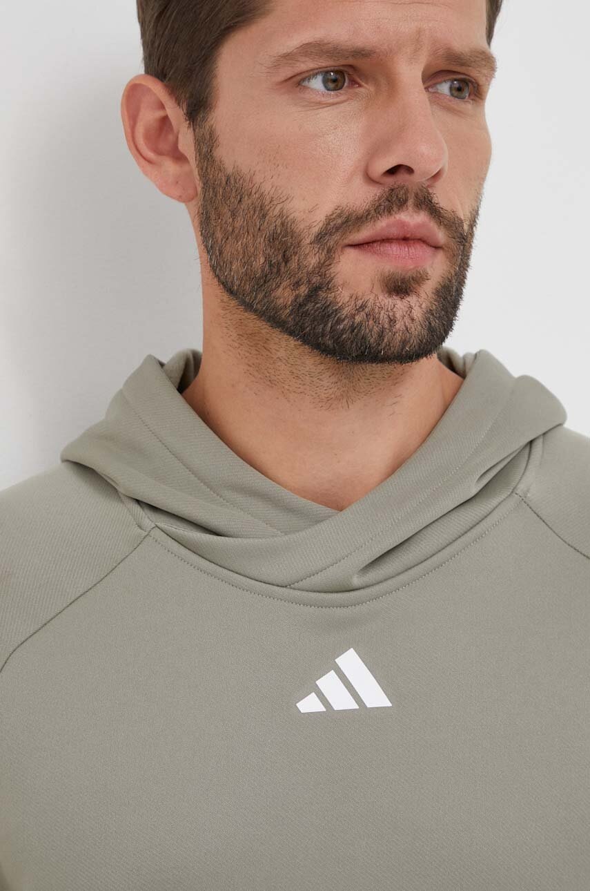 adidas Performance bluza treningowa Train Icons kolor zielony z kapturem z nadrukiem