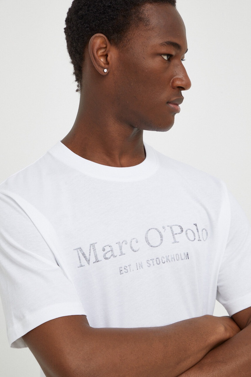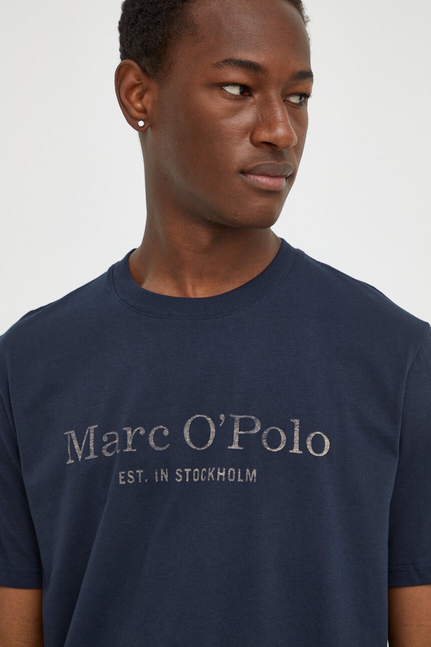 Marc O'Polo t-shirt bawełniany 2-pack męski kolor granatowy z nadrukiem 421205809104