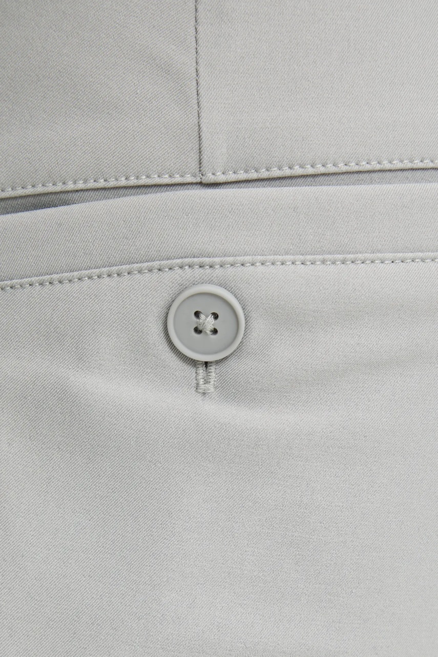 - Model z regularną talią i zapięciem na guzik i suwak.