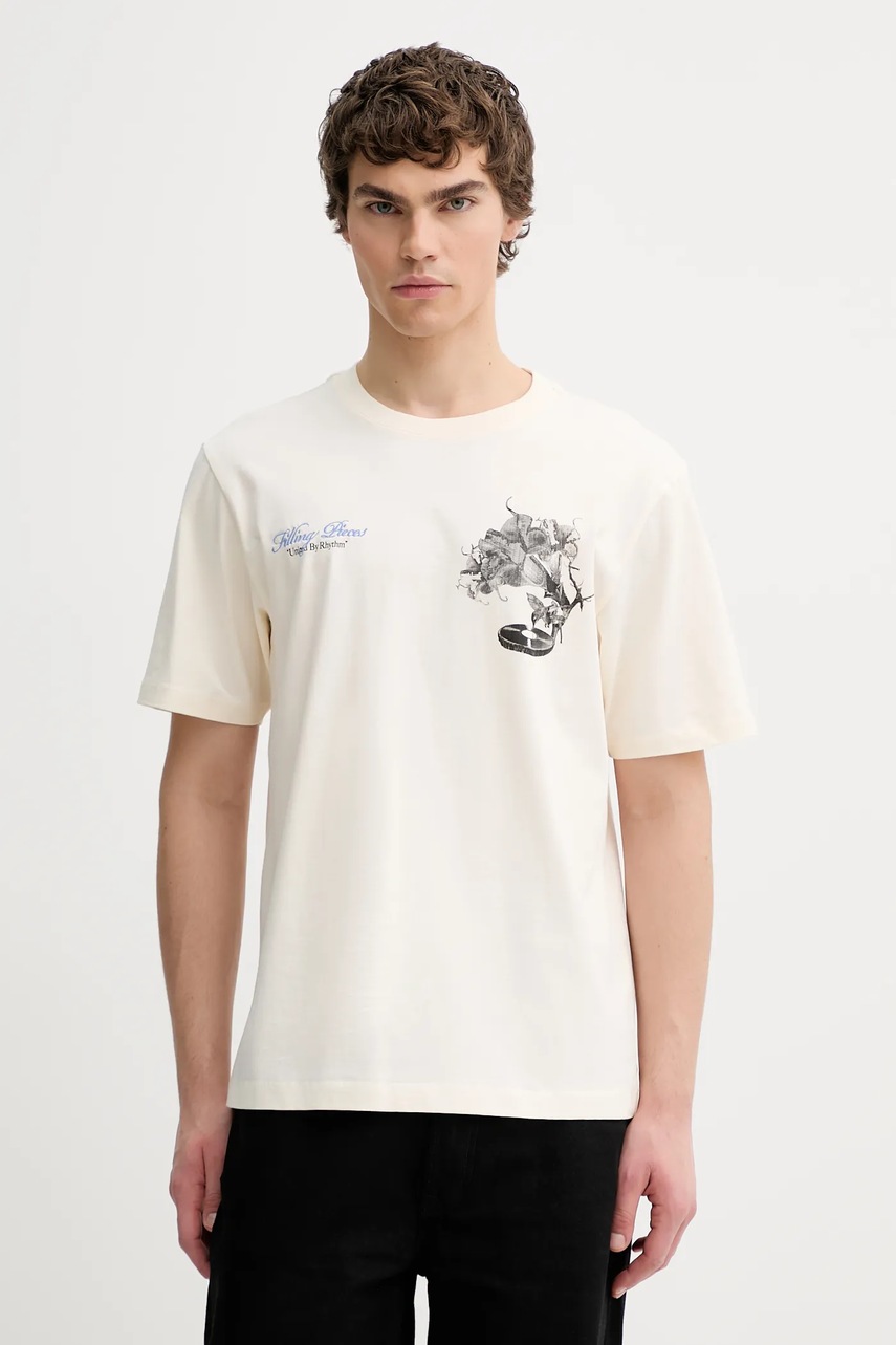 Filling Pieces t-shirt bawełniany Grammophone męski kolor beżowy z nadrukiem 422520500236