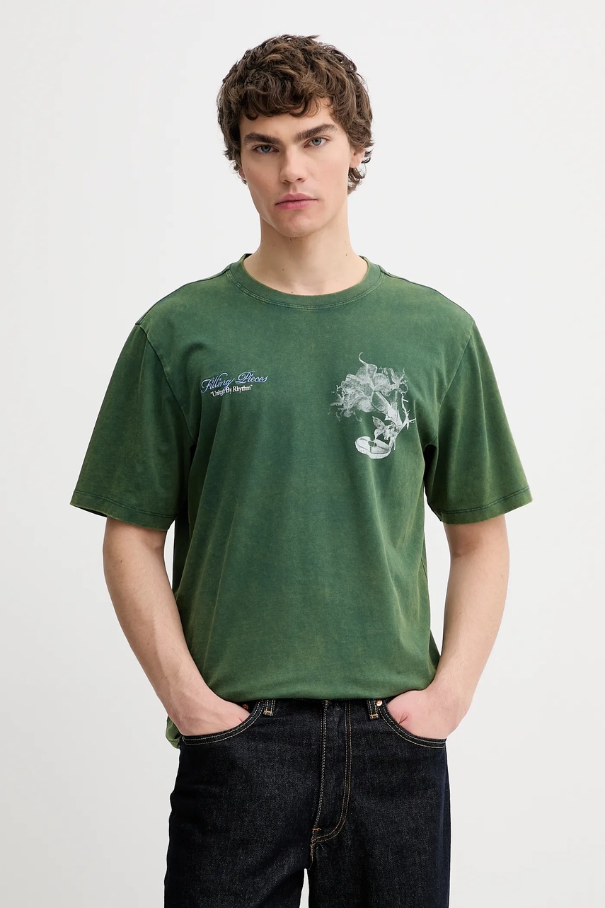Filling Pieces t-shirt bawełniany Grammophone męski kolor zielony z nadrukiem 422520500236